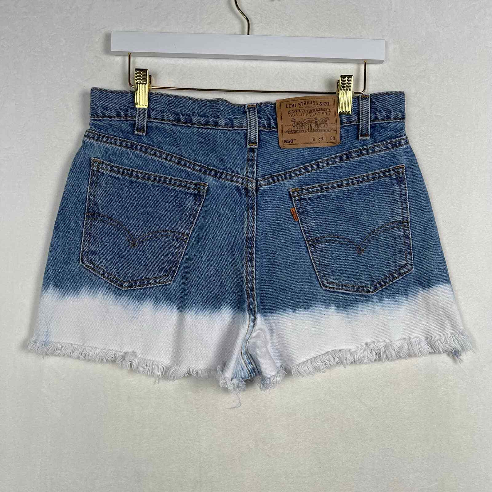 Vintage Levi's 550 Jean Shorts Cut Offs Orange Tab Bleach Dyed Hem High Rise 33W
