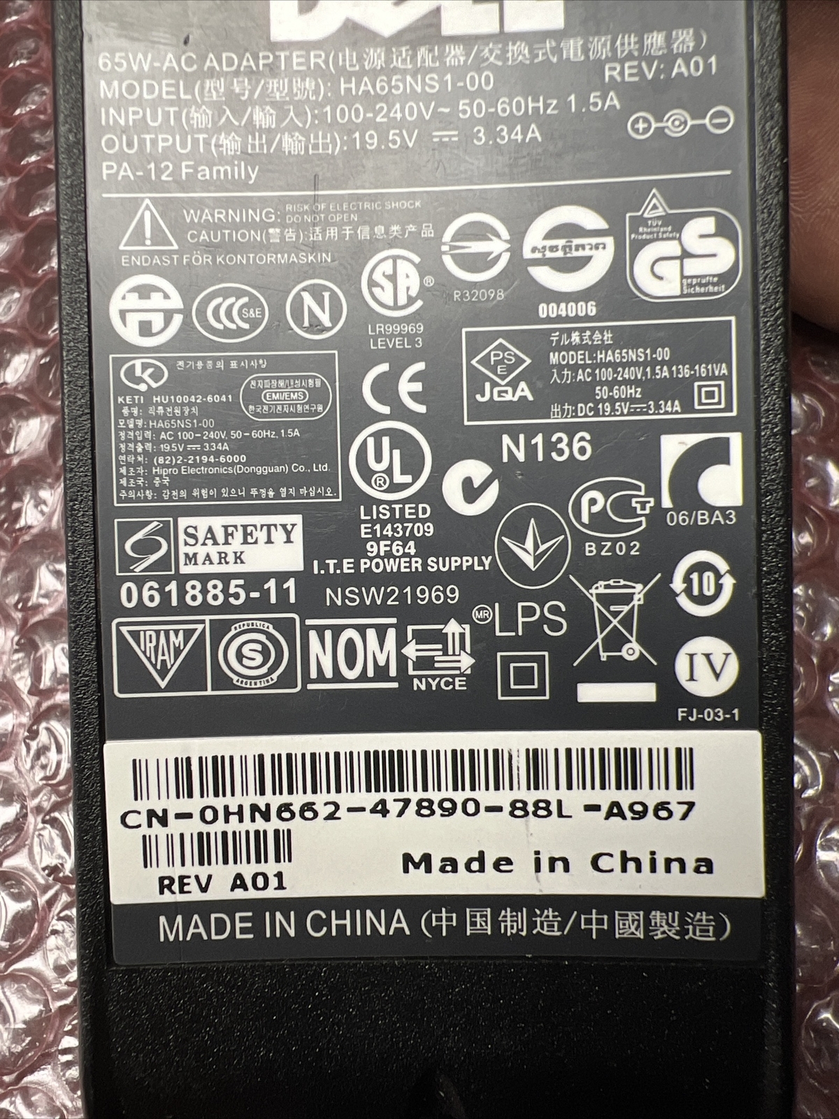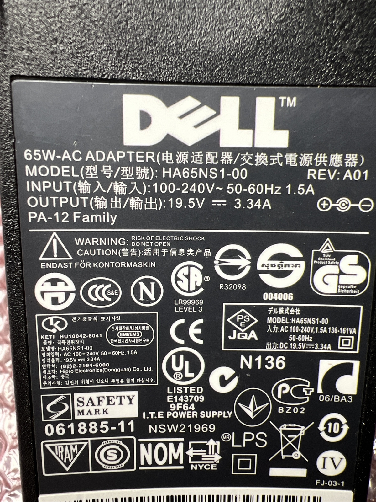 Dell HA65NS1-00 Genuine Laptop Charger OEM AC Adapter Black Tested Working