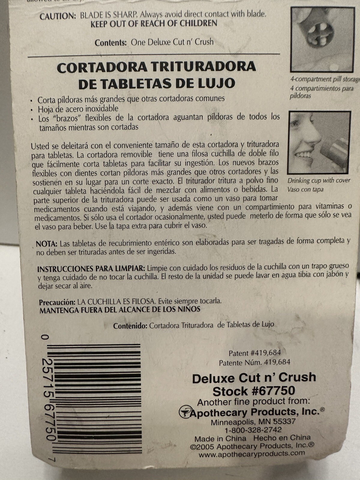 Ezy Dose Deluxe Cut N' Crush Pill Crusher Grinder Removable Drinking Cup T ...