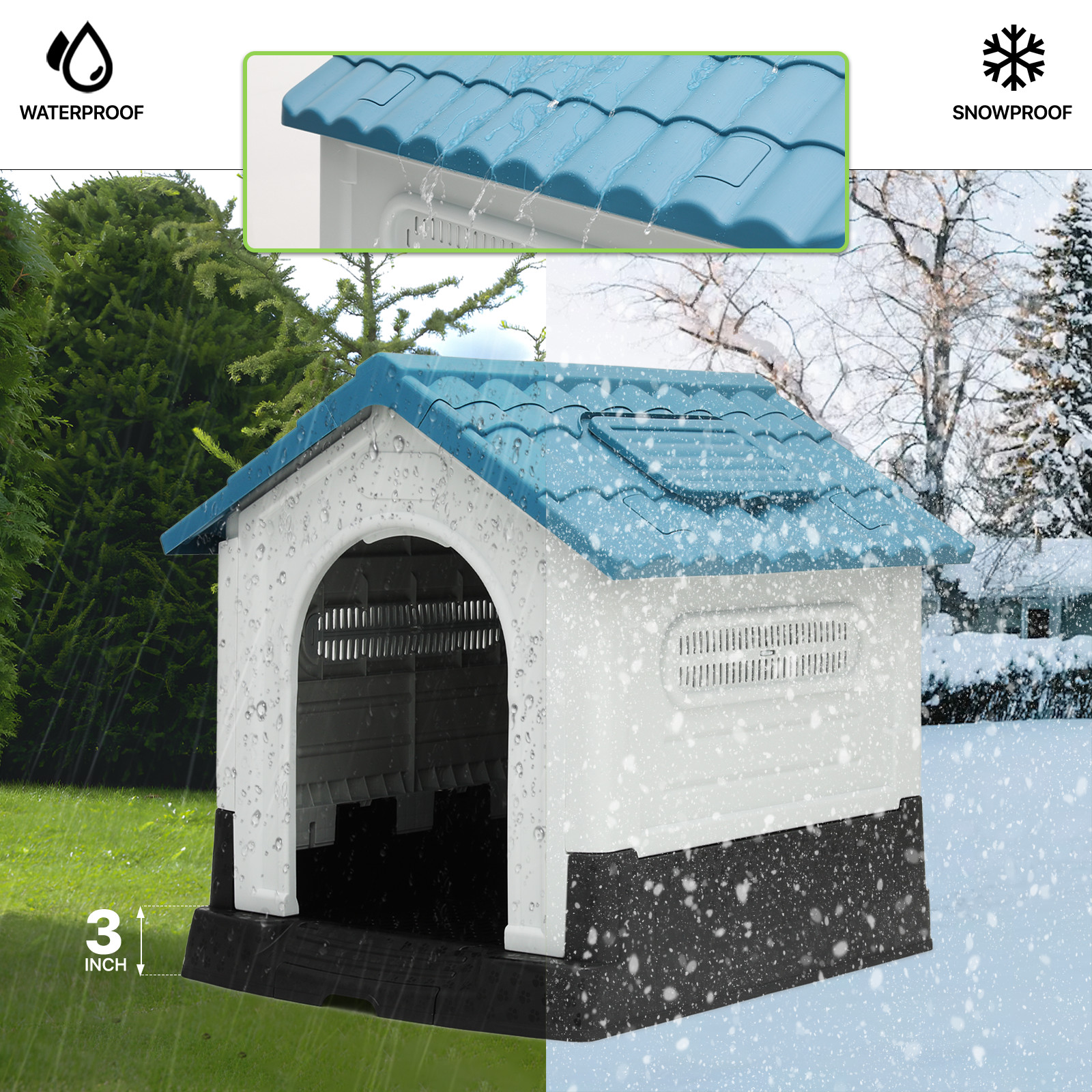Dog House ROOF SKYLIGHT ADJUSTABLE VENTS Elevated Base Puppy Shelter Pet Kennel