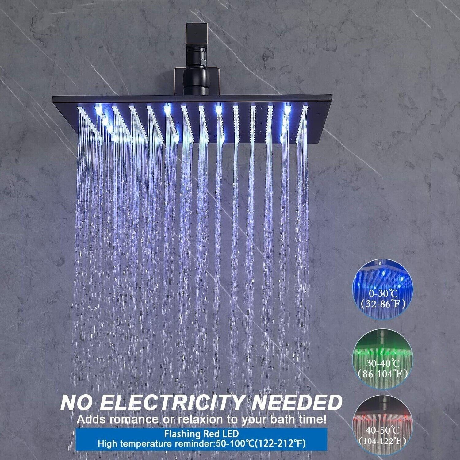Особенности: LED Lights, rainfall/waterfall, handheld shower, tub spout, Adjustable Angle, Easy-cleaning Nozzles, High Pressure