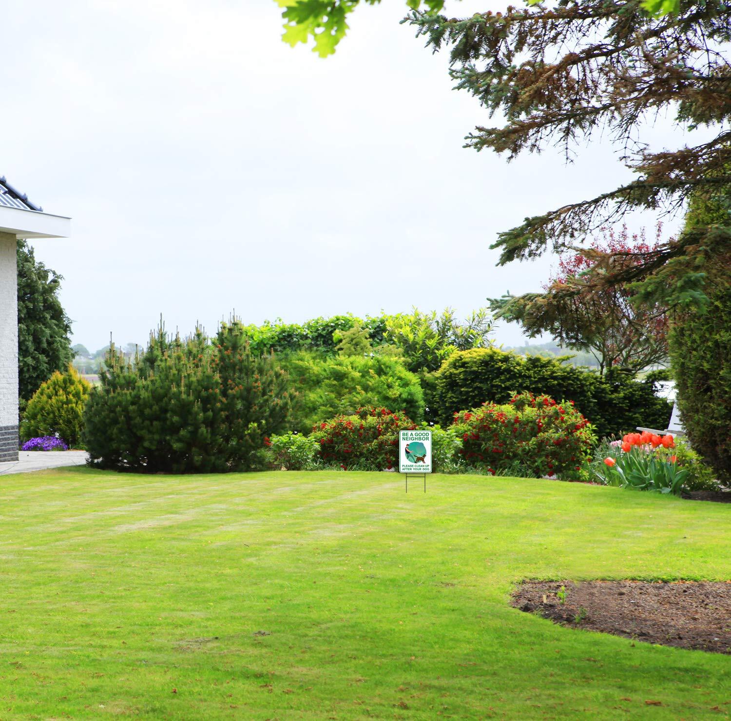 2 Pack, 9 x 12 Clean Up After Your Dog Signs With Metal H-Stakes Double Sided