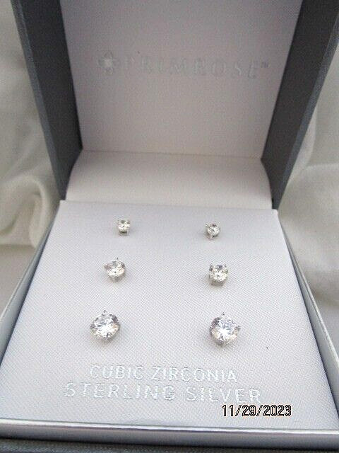 Primrose Cubic Zirconia Sterling Silver Earrings 3 Pair