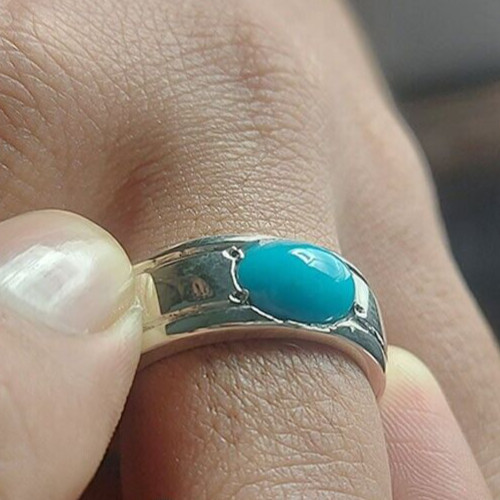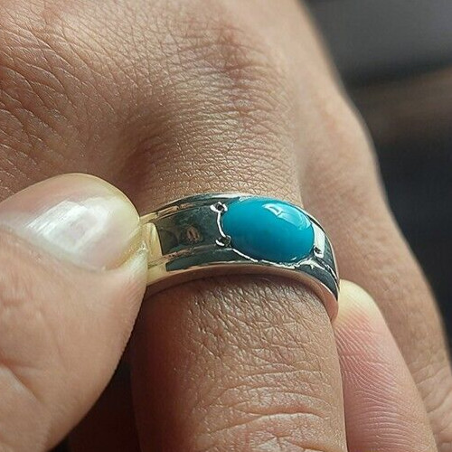 как выглядит 14 ct Nishapuri Hussaini Turquoise Ring Natural Feroza Stone Ring 925 Sterling фото