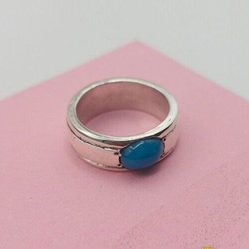 14 ct Nishapuri Hussaini Turquoise Ring Natural Feroza Stone Ring 925 Sterling