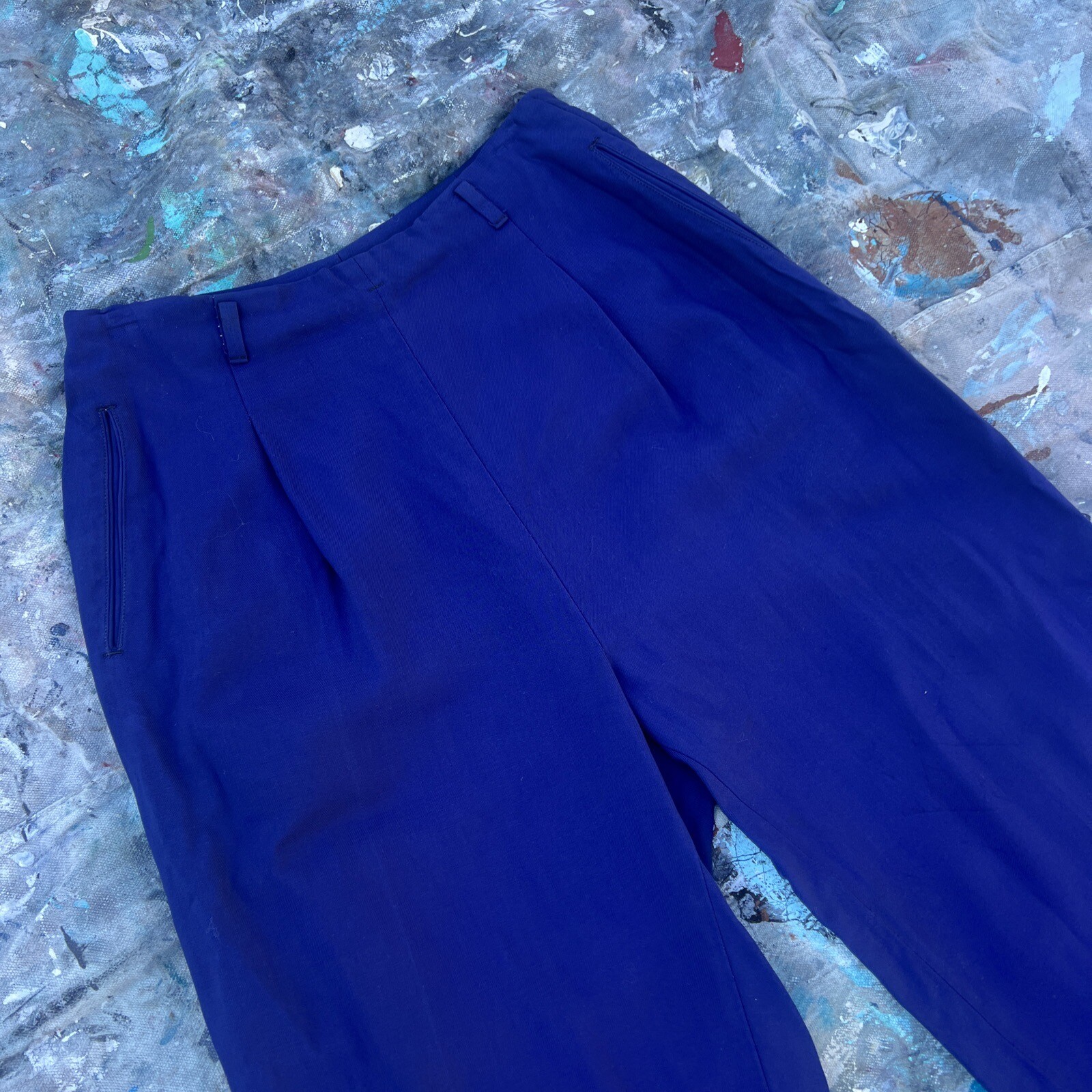 как выглядит Vintage 1940s Navy Blue Cotton Twill Pants High Waist Side Zip Sportswear фото