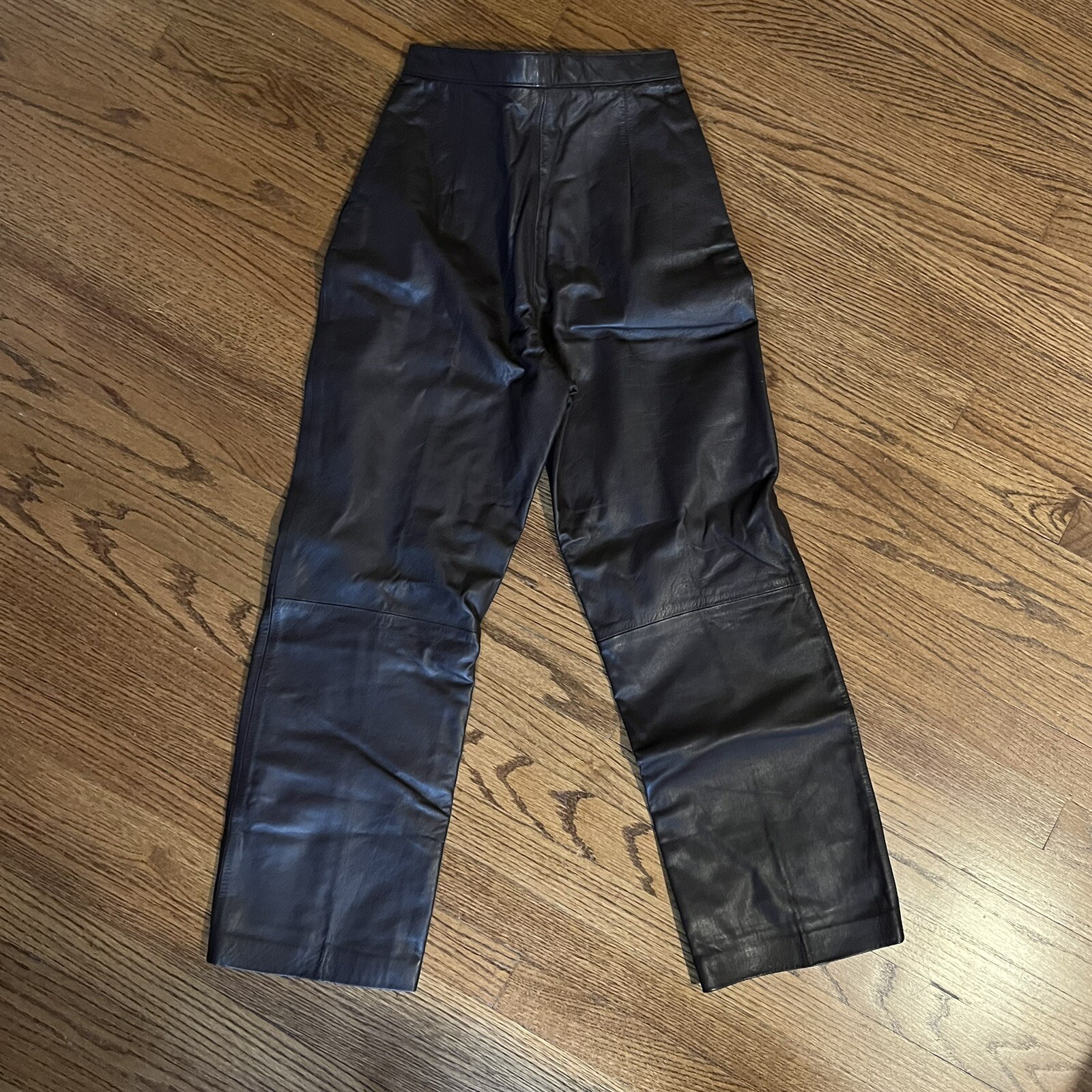 Vintage 80s pleated leather high waisted pants chocolate brown West Bay size 4