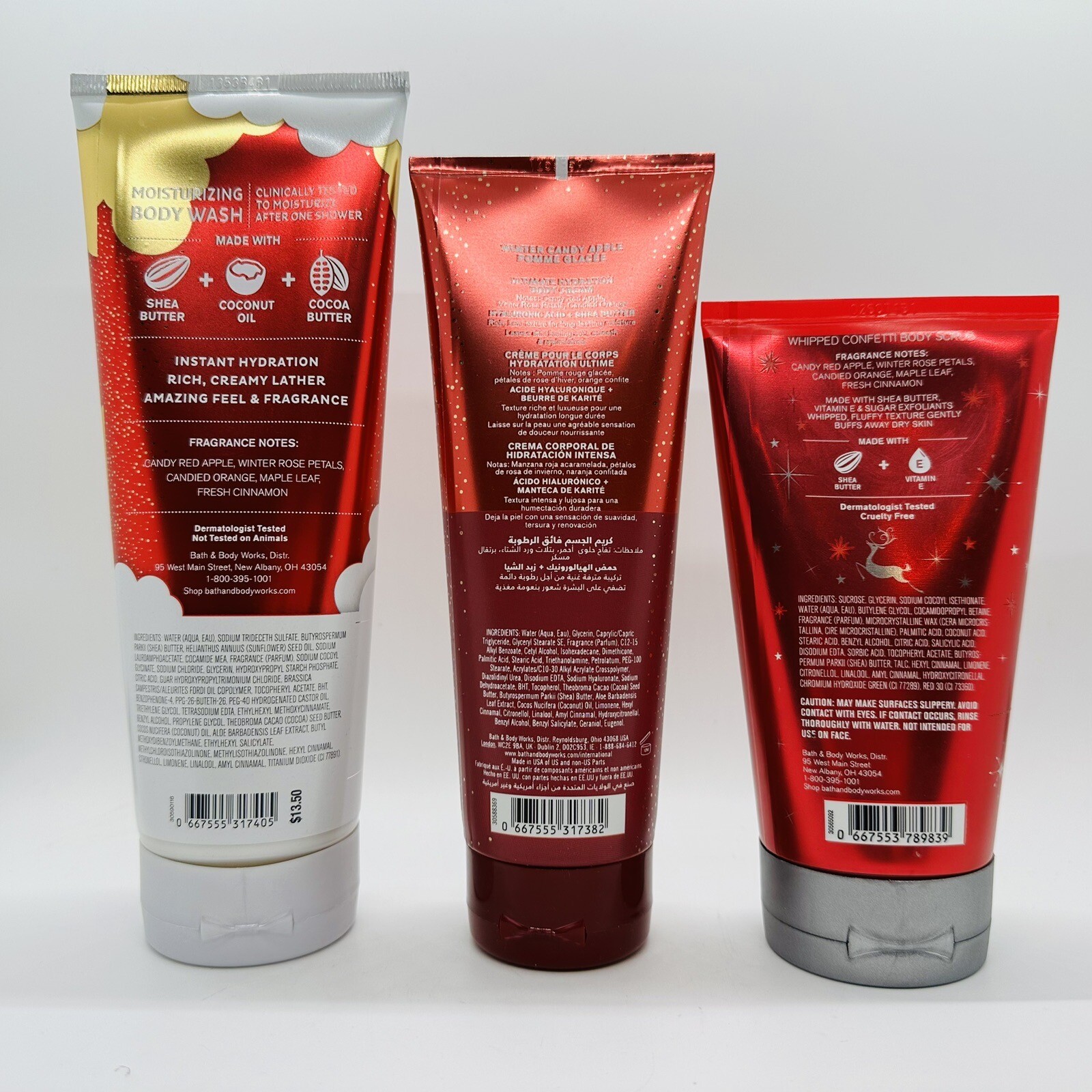 как выглядит NEW SET 3 PCS BATH BODY WORKS WINTER CANDY APPLE BODY WASH, CREAM SCRUB фото