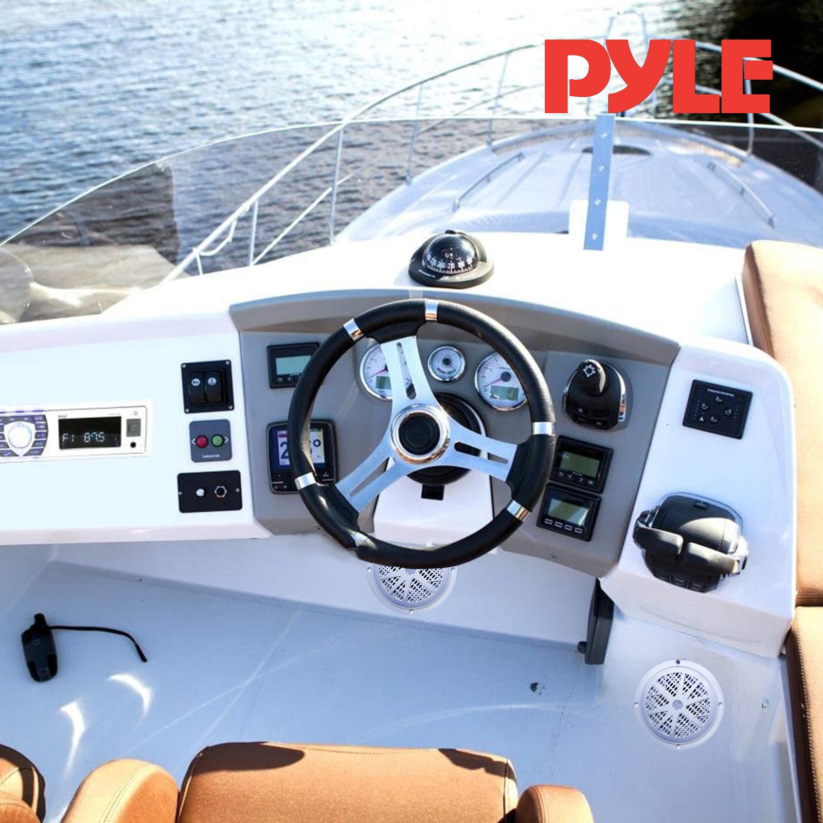 Pyle PLMRKT36WT 5.25 Inch Bluetooth Marine Stereo Receiver Speaker Kit, White