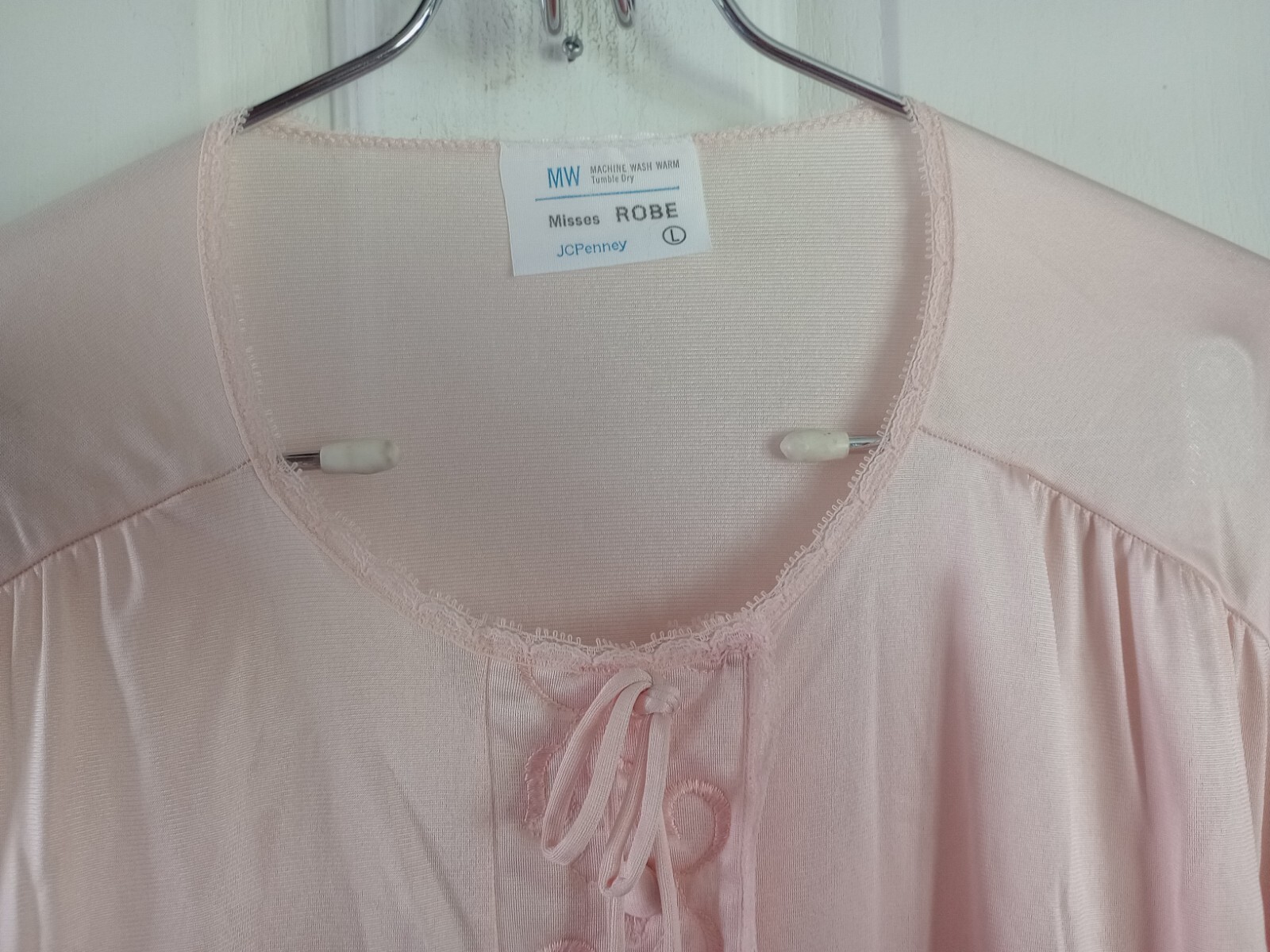 Vintage JCPenny Robe Misses Large Pink Nylon Embroidered