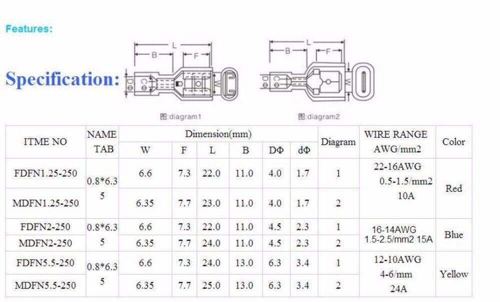 как выглядит 22-10 AWG Insulated Nylon Female Male Spade Wire Connectors Crimp Terminals фото