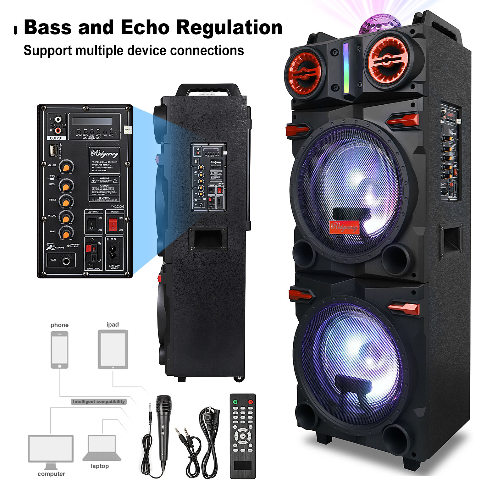 Dual 10 9000W Bluetooth Speaker Woofer Rechargable Sound System FM Karaok Mic