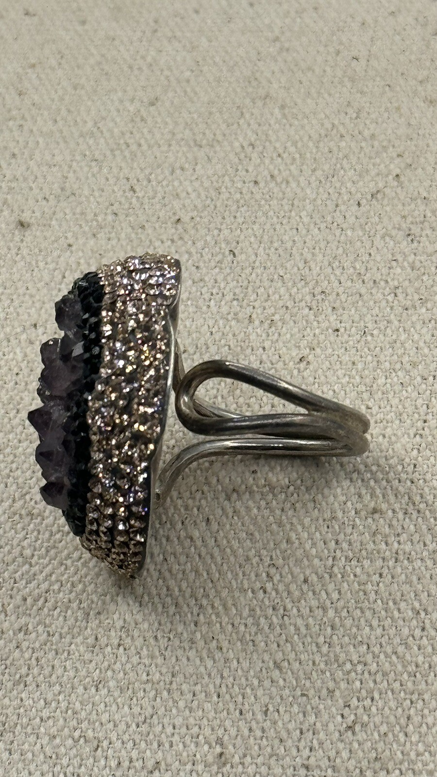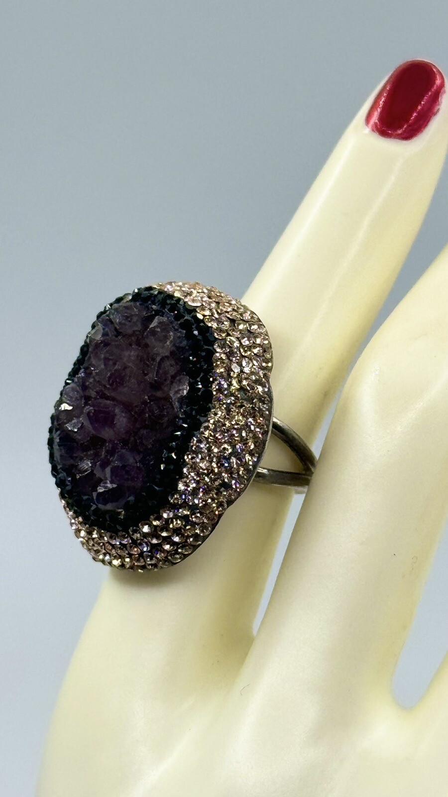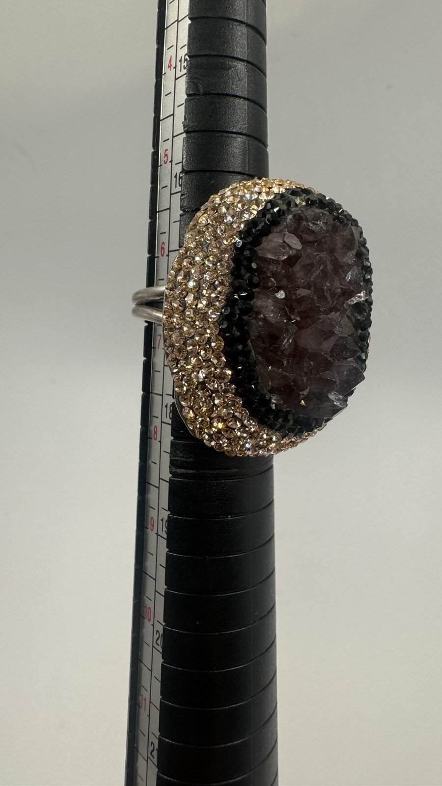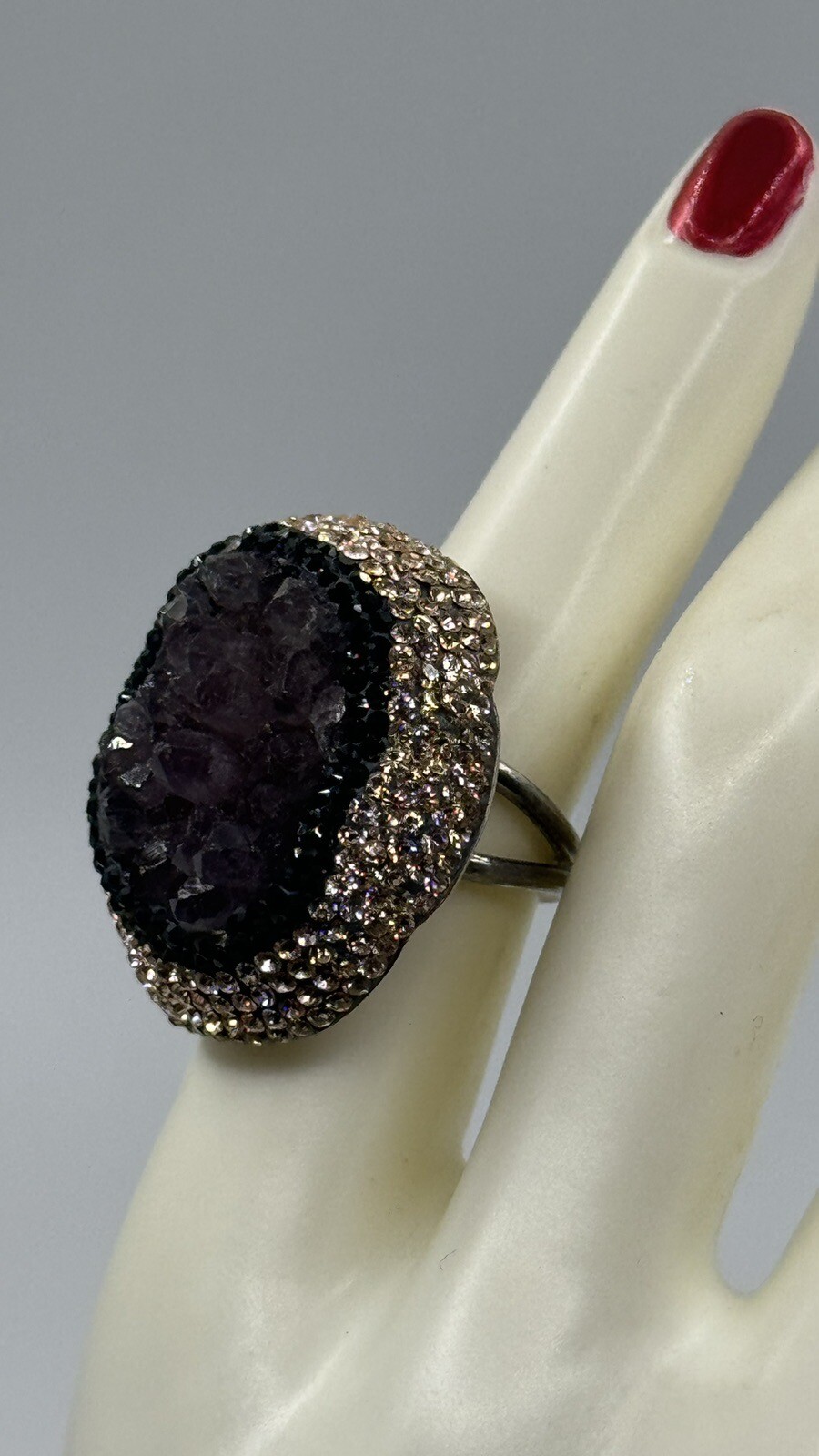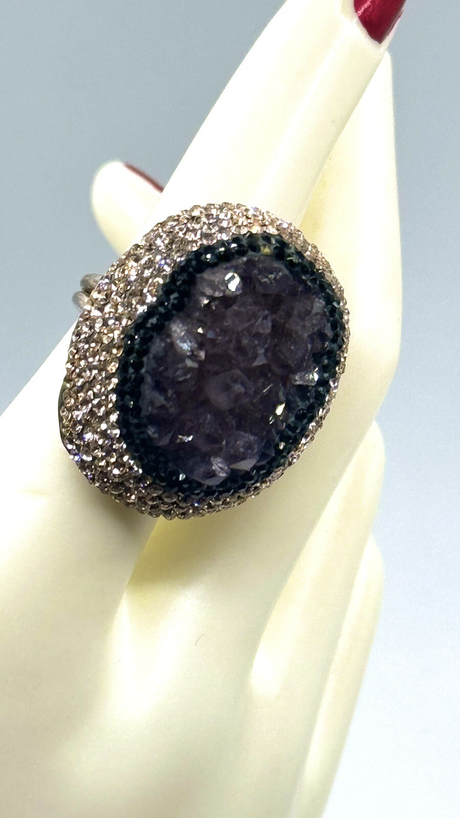 как выглядит Turkish Purple Amethyst Sterling Silver 925 Druzy Ring Black Crystals Sz 6.75 фото