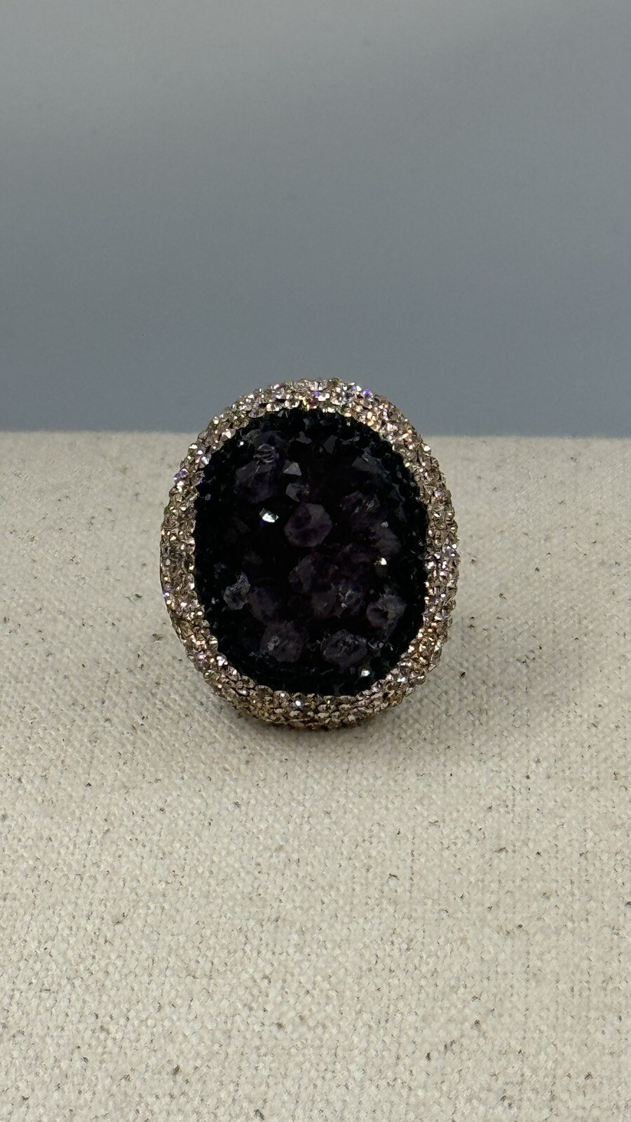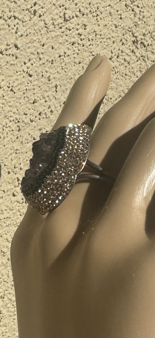 Turkish Purple Amethyst Sterling Silver 925 Druzy Ring Black Crystals Sz 6.75