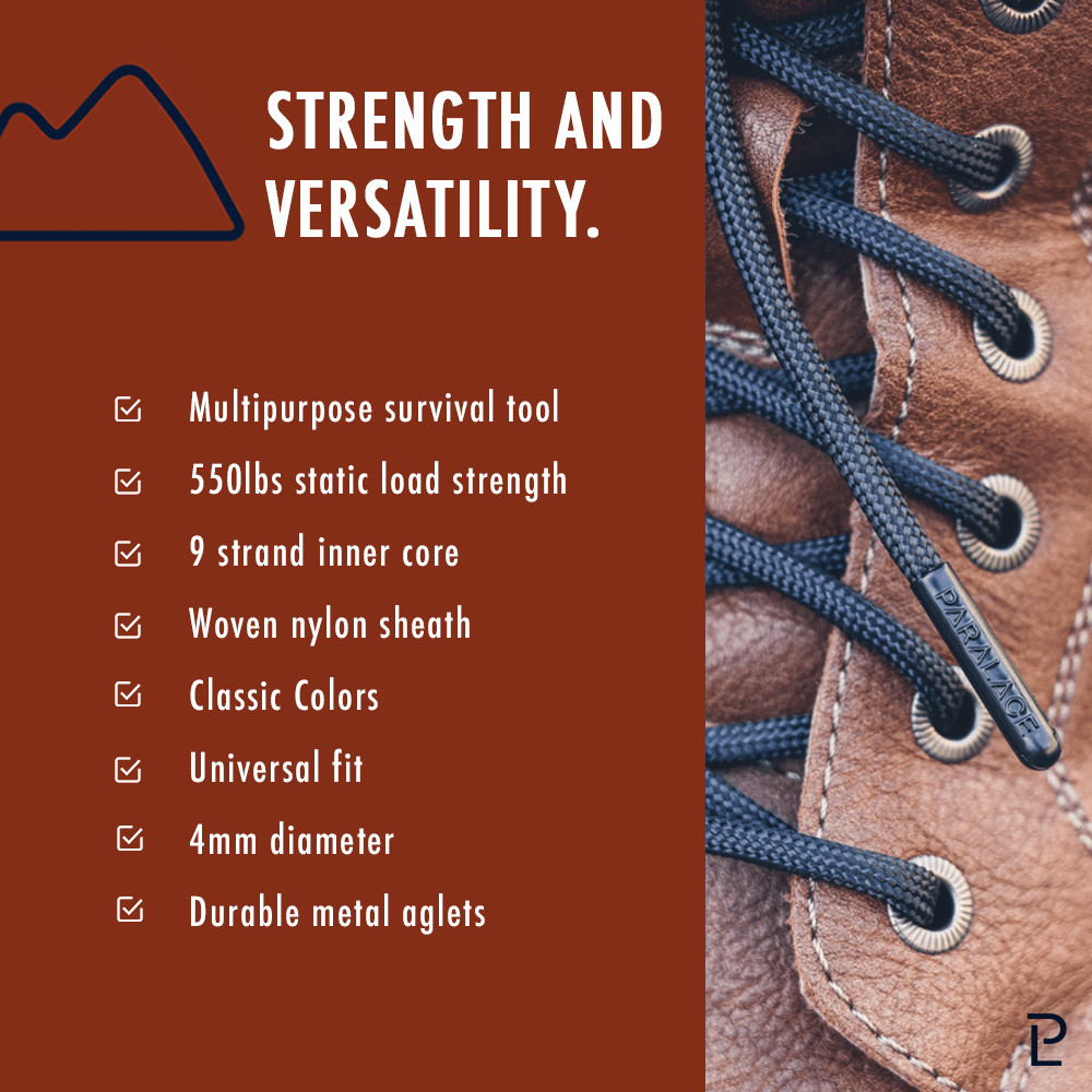 ParaLace 550 Paracord Shoelaces for Hiking Boots Shoes 45 54 60 72 81 Inch