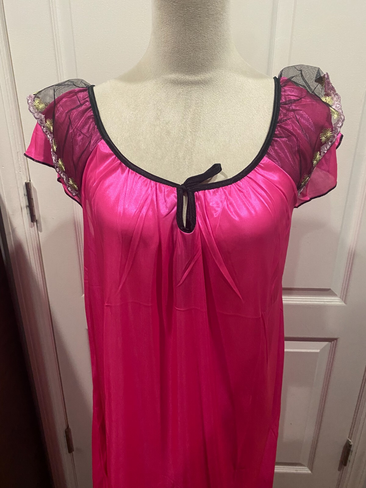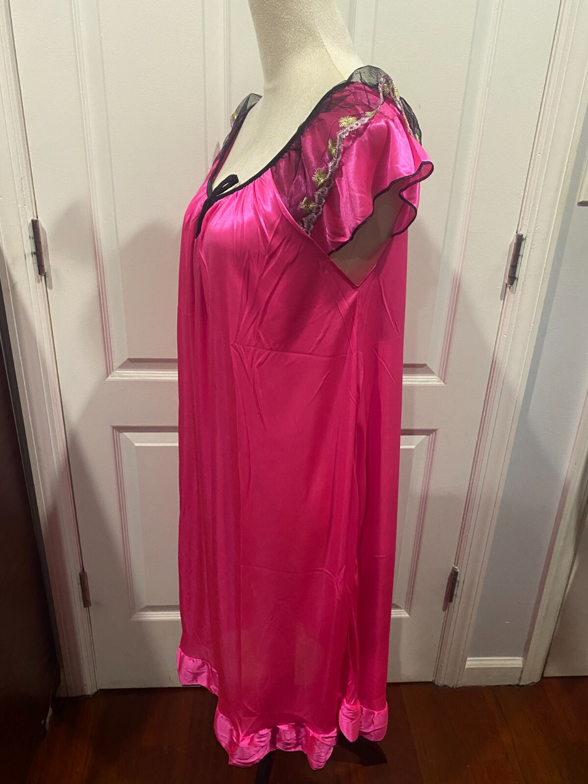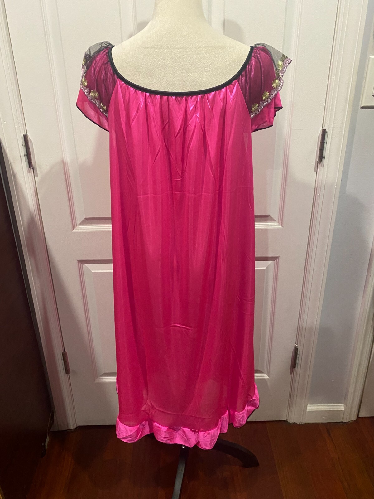 как выглядит Women Hot Pink Silky Short Sleeve Nightgown 2XL 39"Lx22"W фото