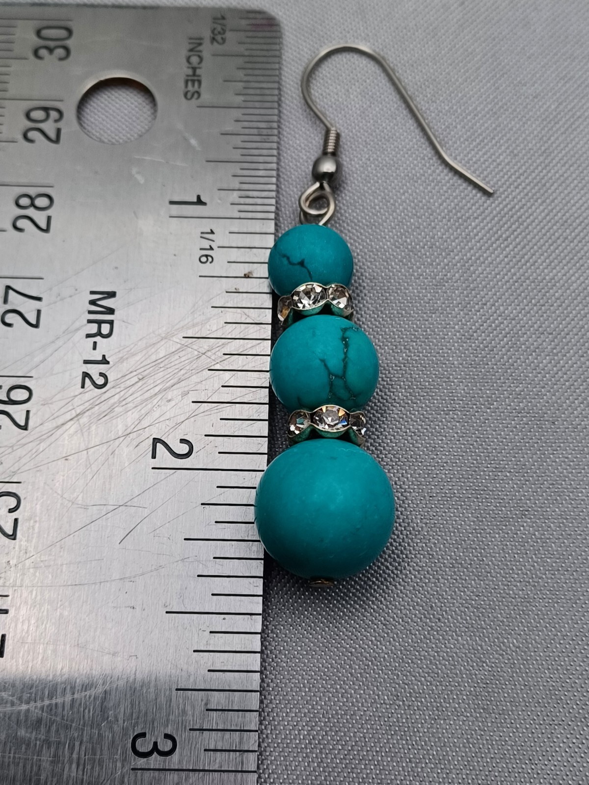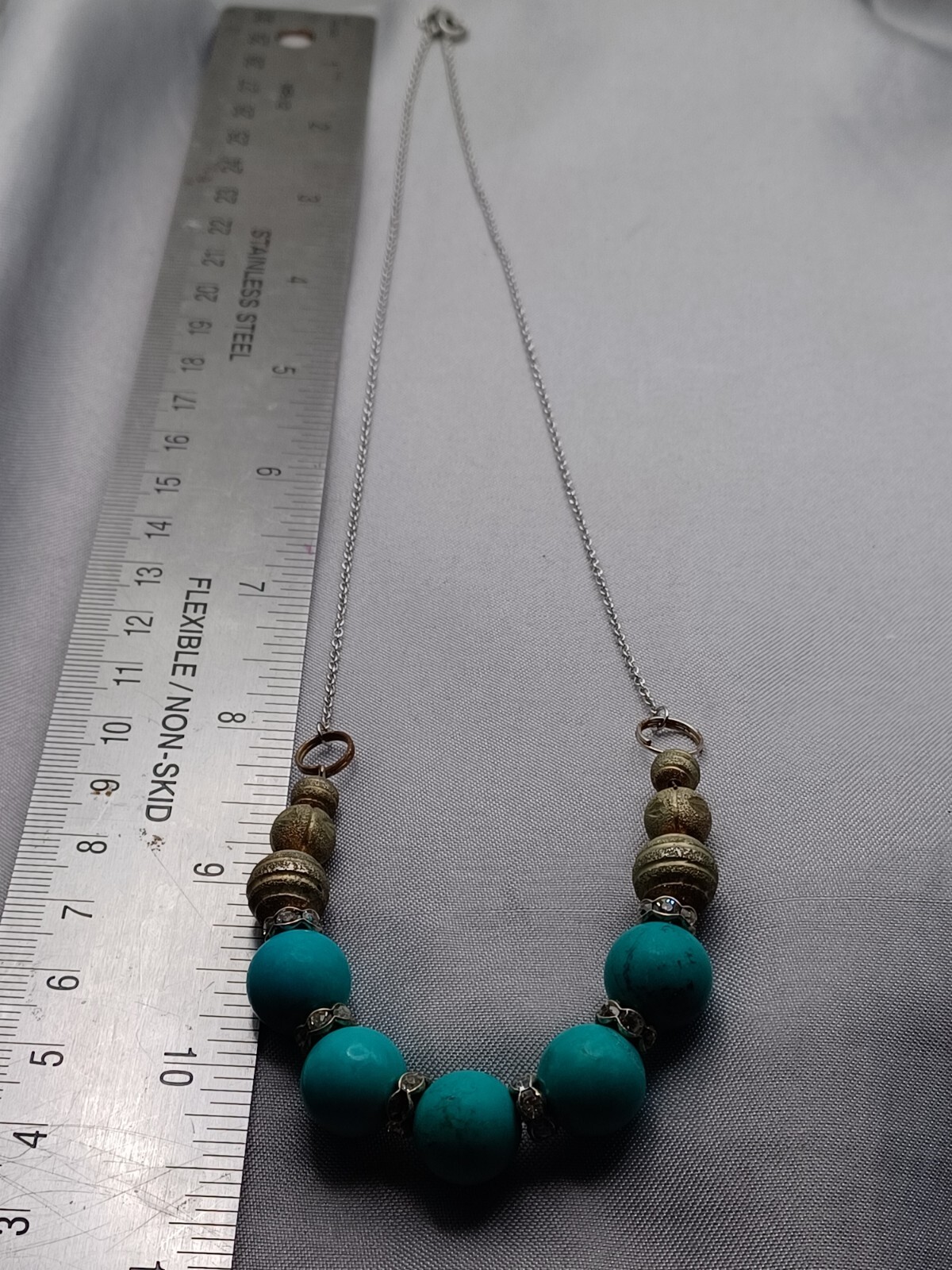 как выглядит Turquoise Bead Set Necklace, Bracelet, Earring White Rhinestone Multi Tone Metal фото