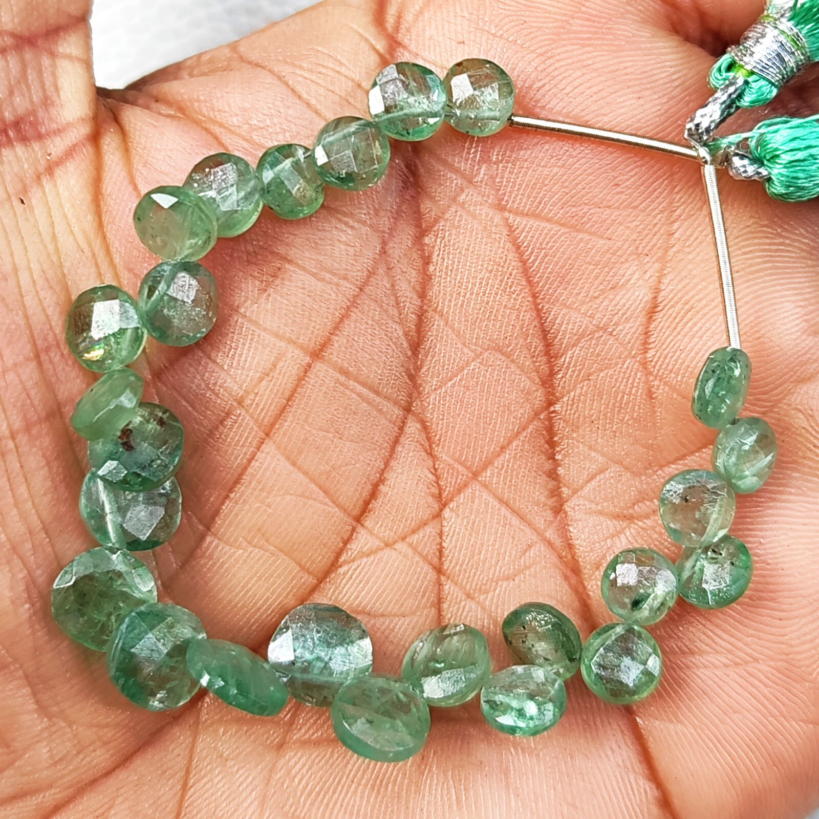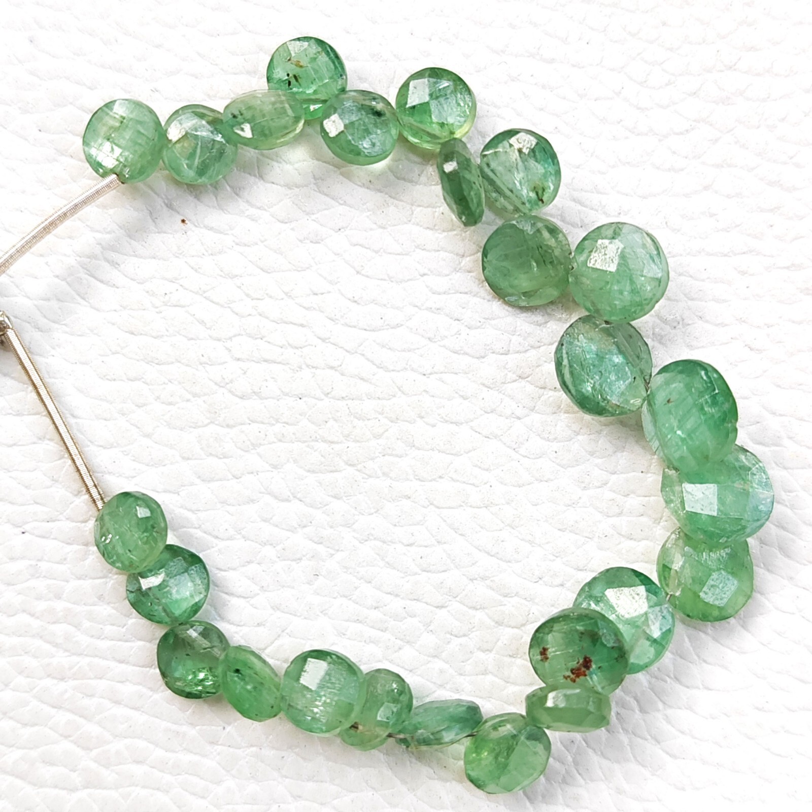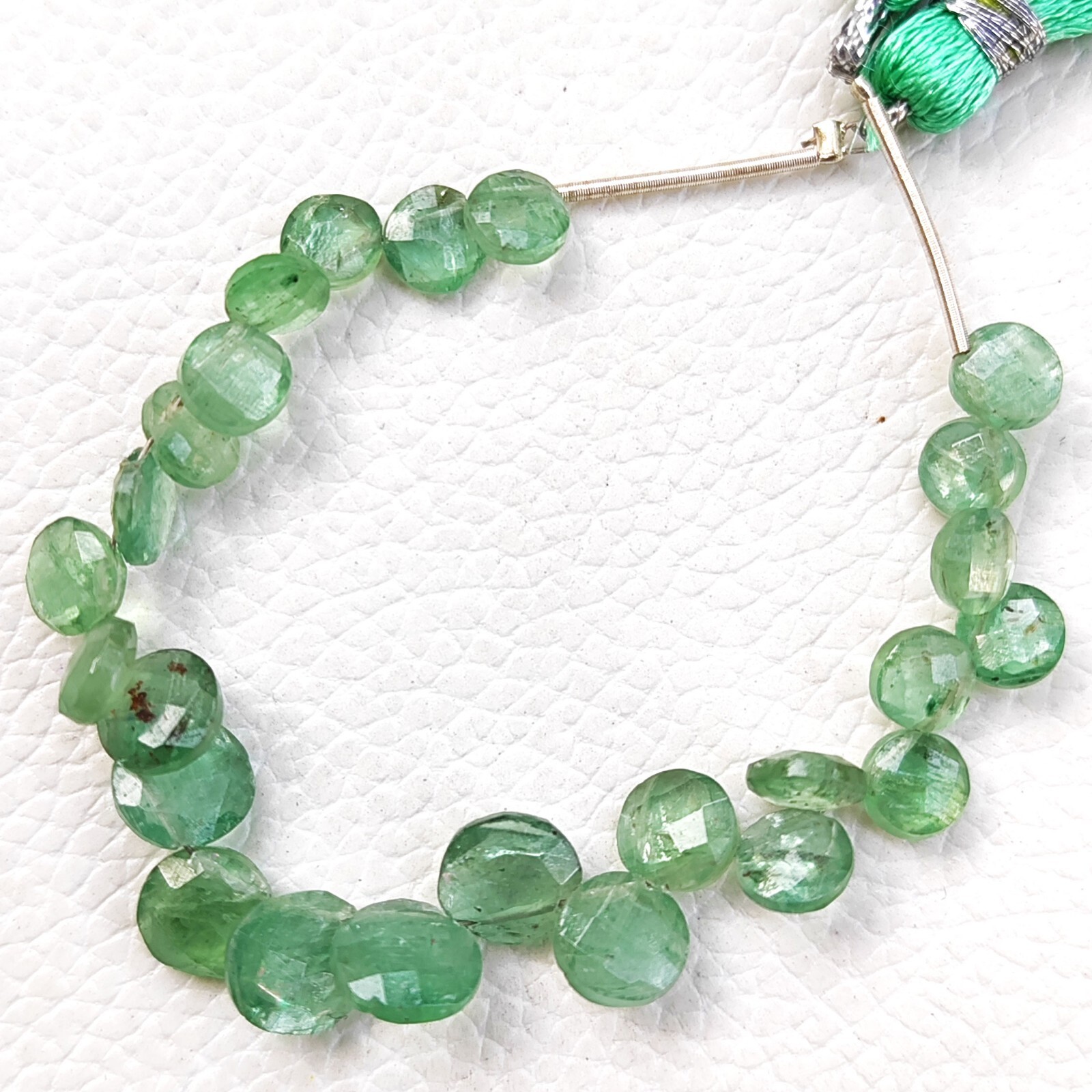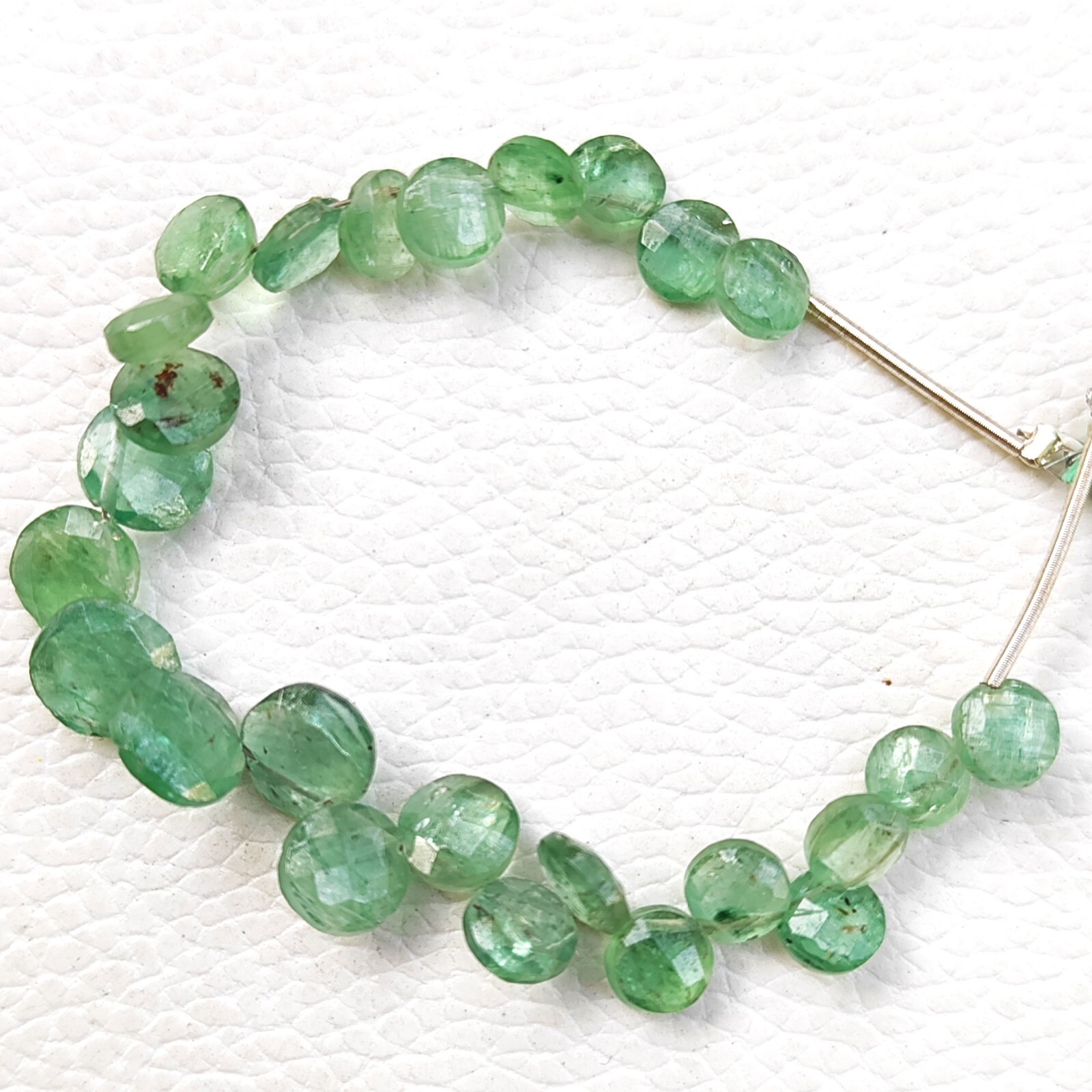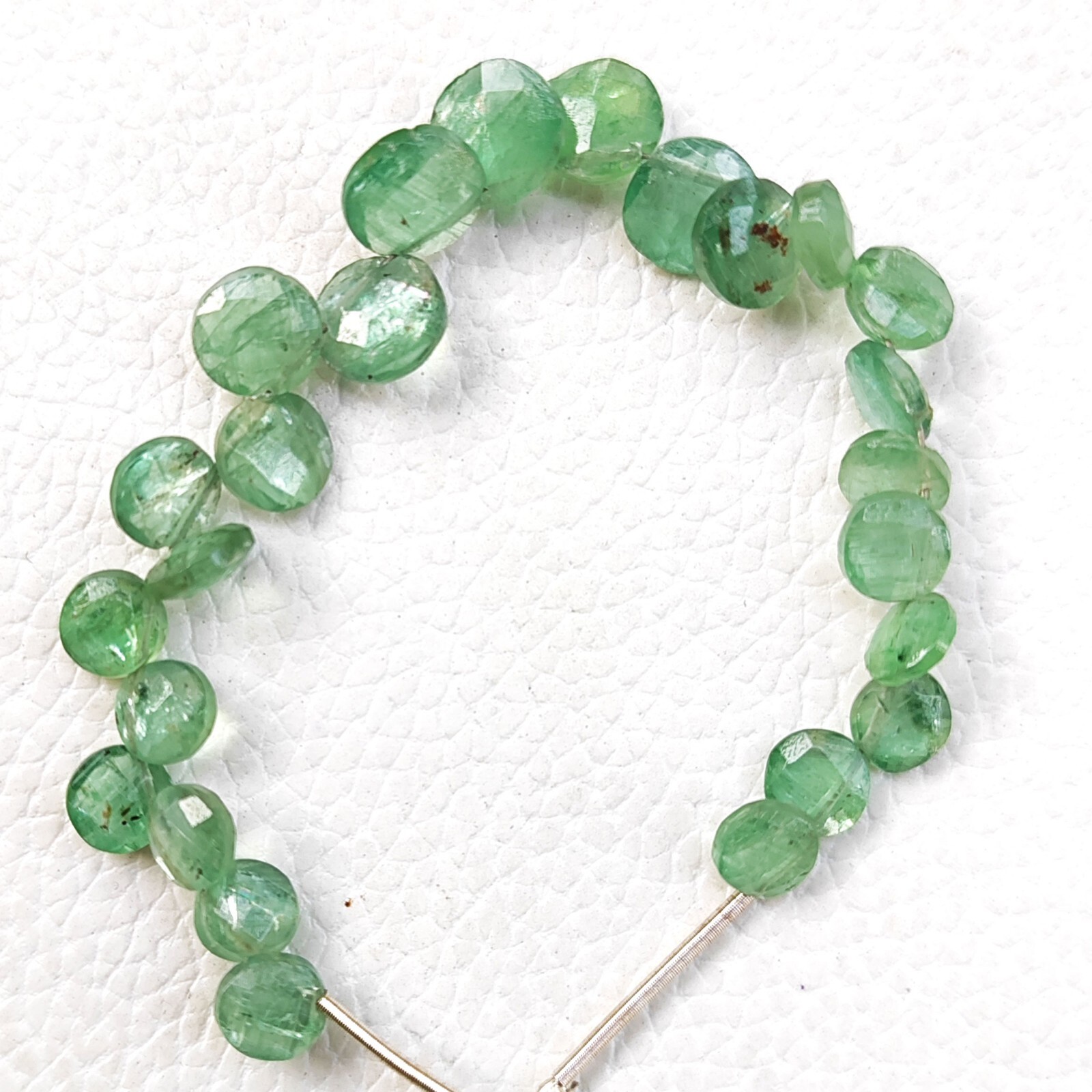 Natural Green Kyanite Gemstone 6 to 8 mm Faceted Coin Shape Beads 5 Inch Strand