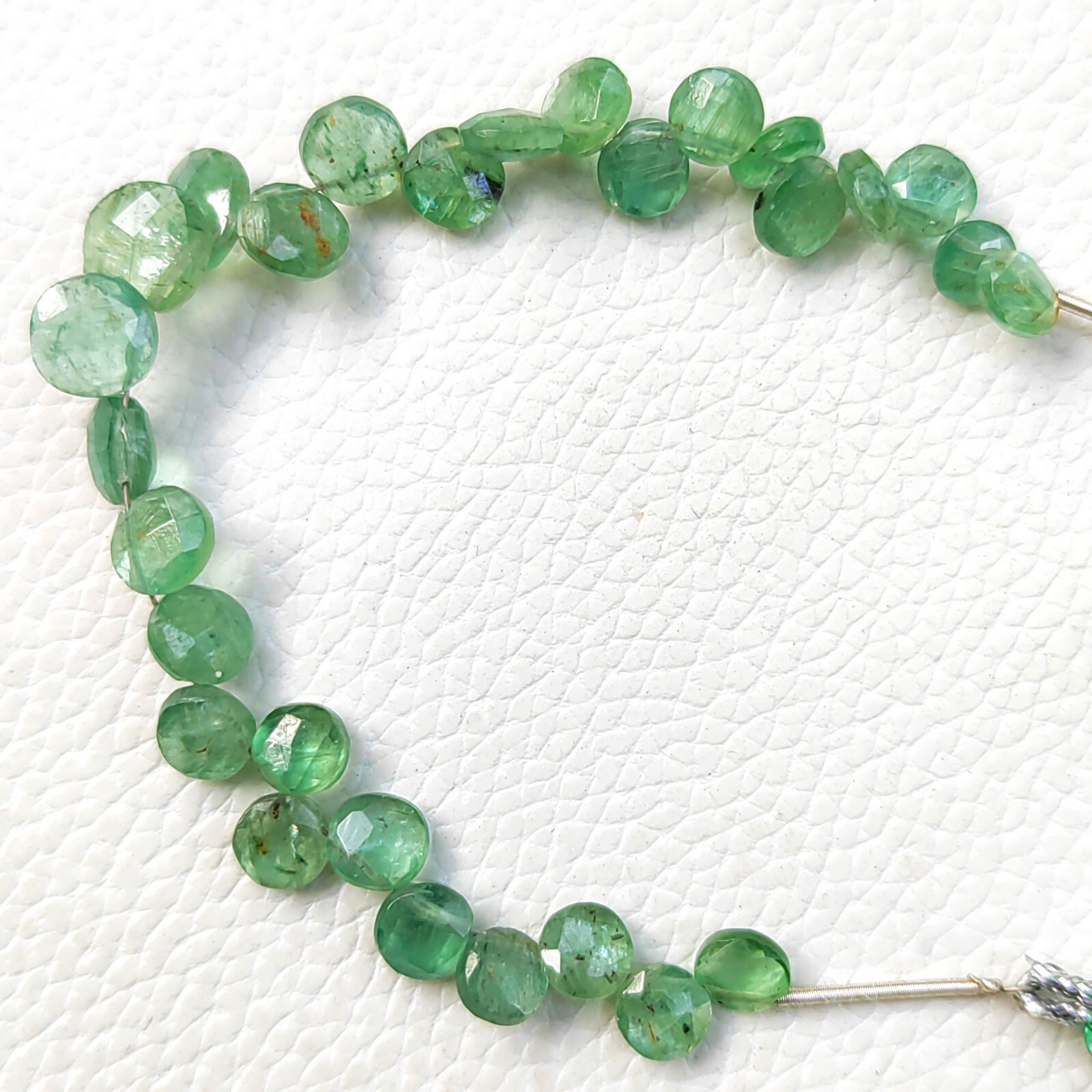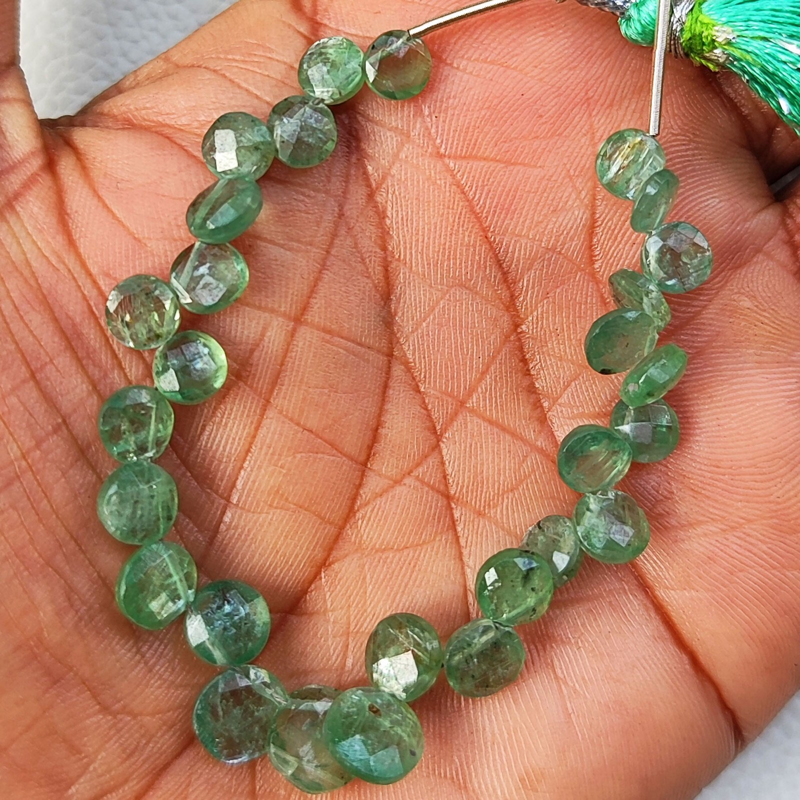 как выглядит Natural Green Kyanite Gemstone 5 to 7 mm Faceted Coin Shape Beads 5 Inch Strand фото