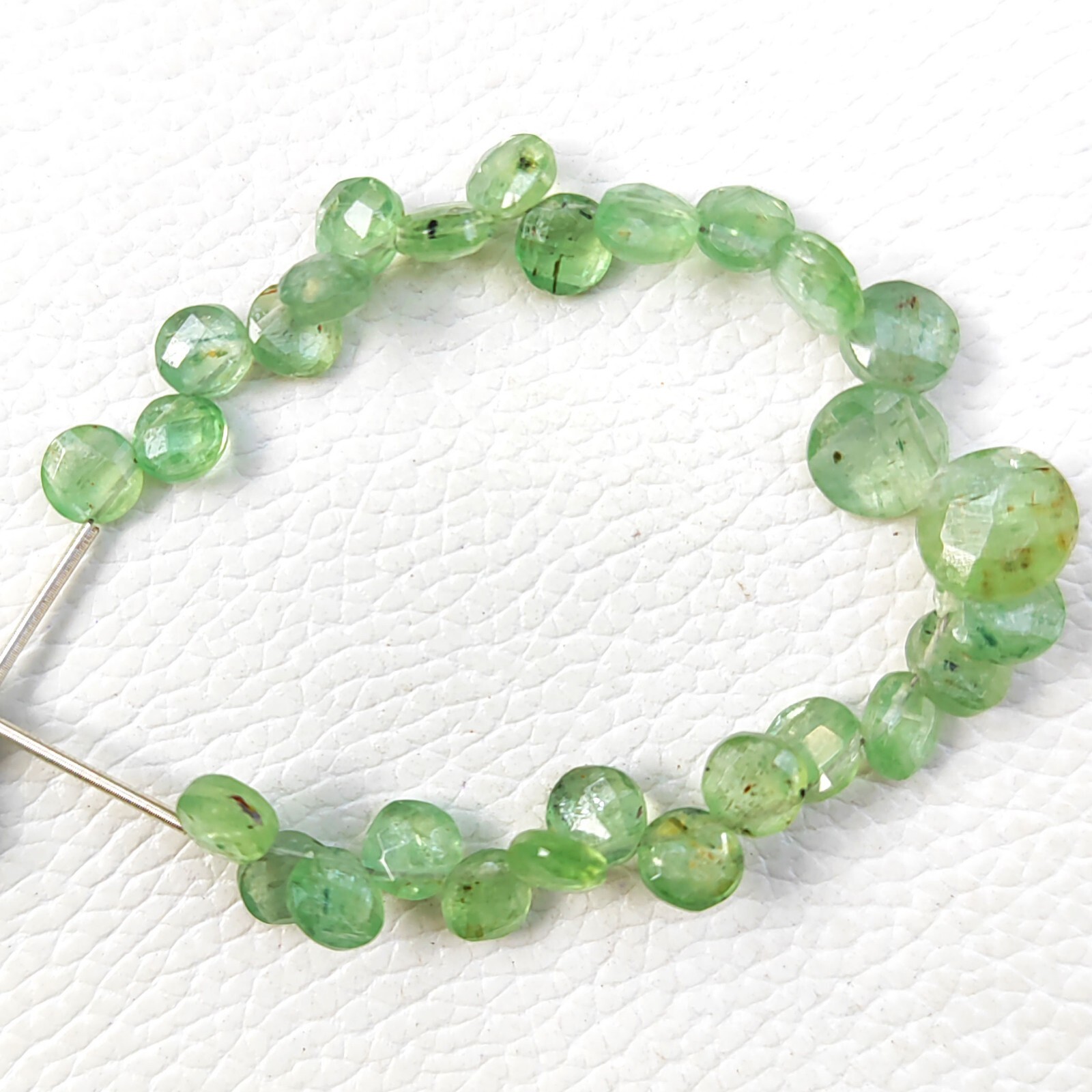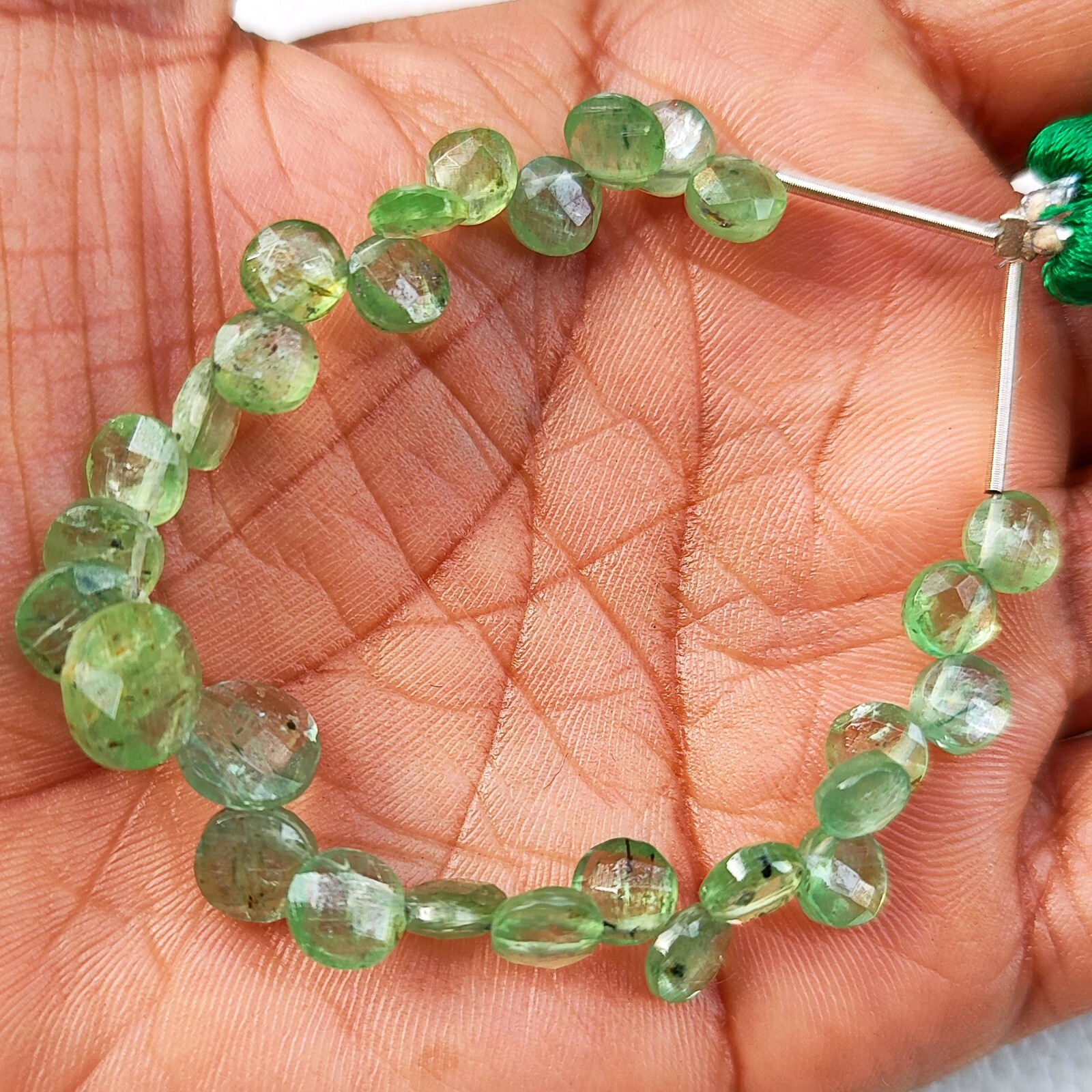 как выглядит Natural Green Kyanite Gemstone 6 to 7 mm Size Faceted Coin Shape Beads 5" Strand фото