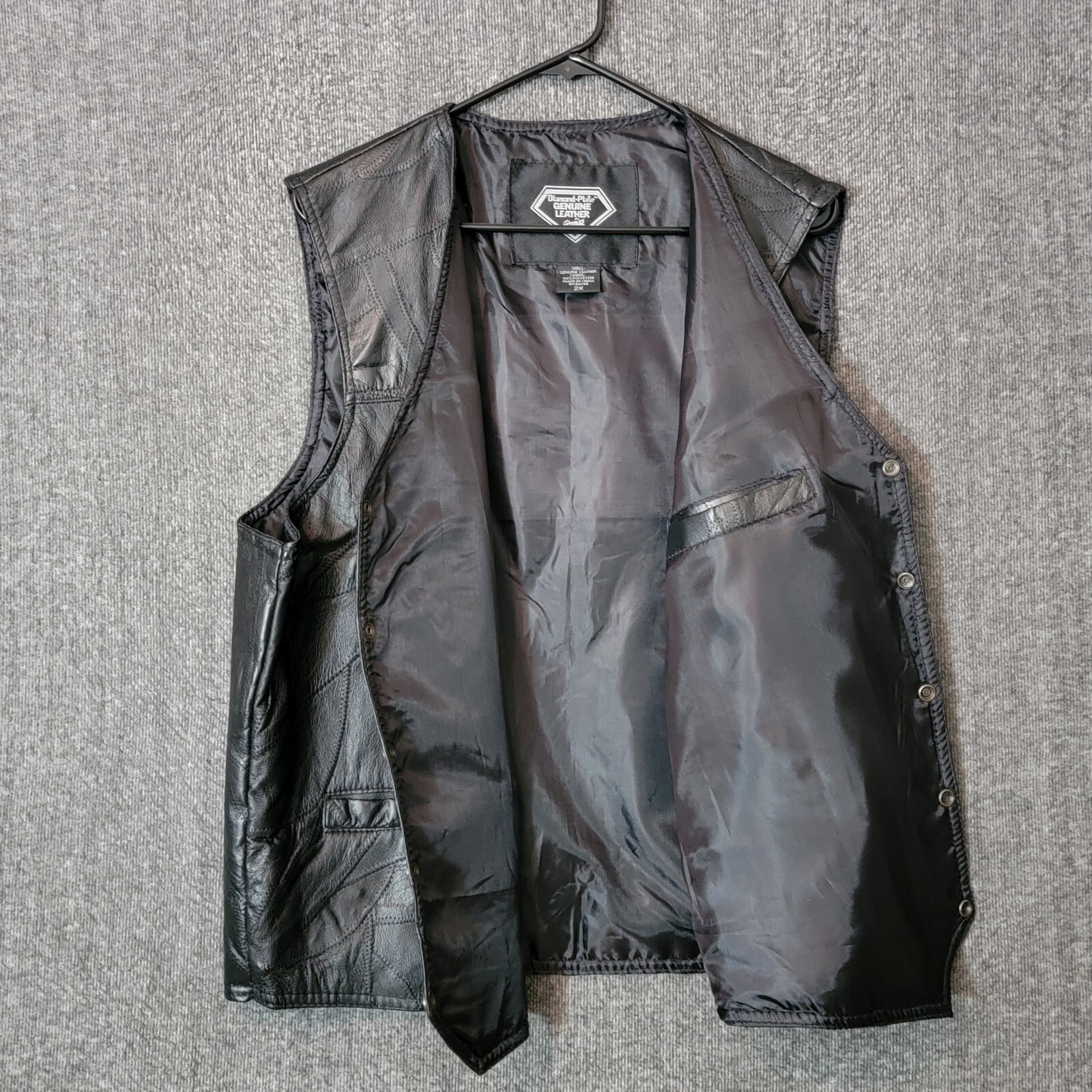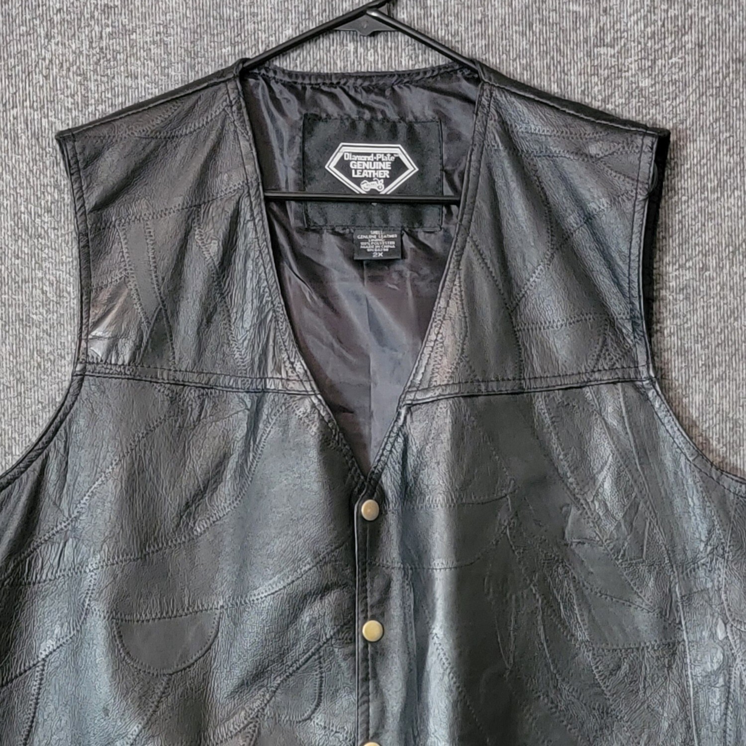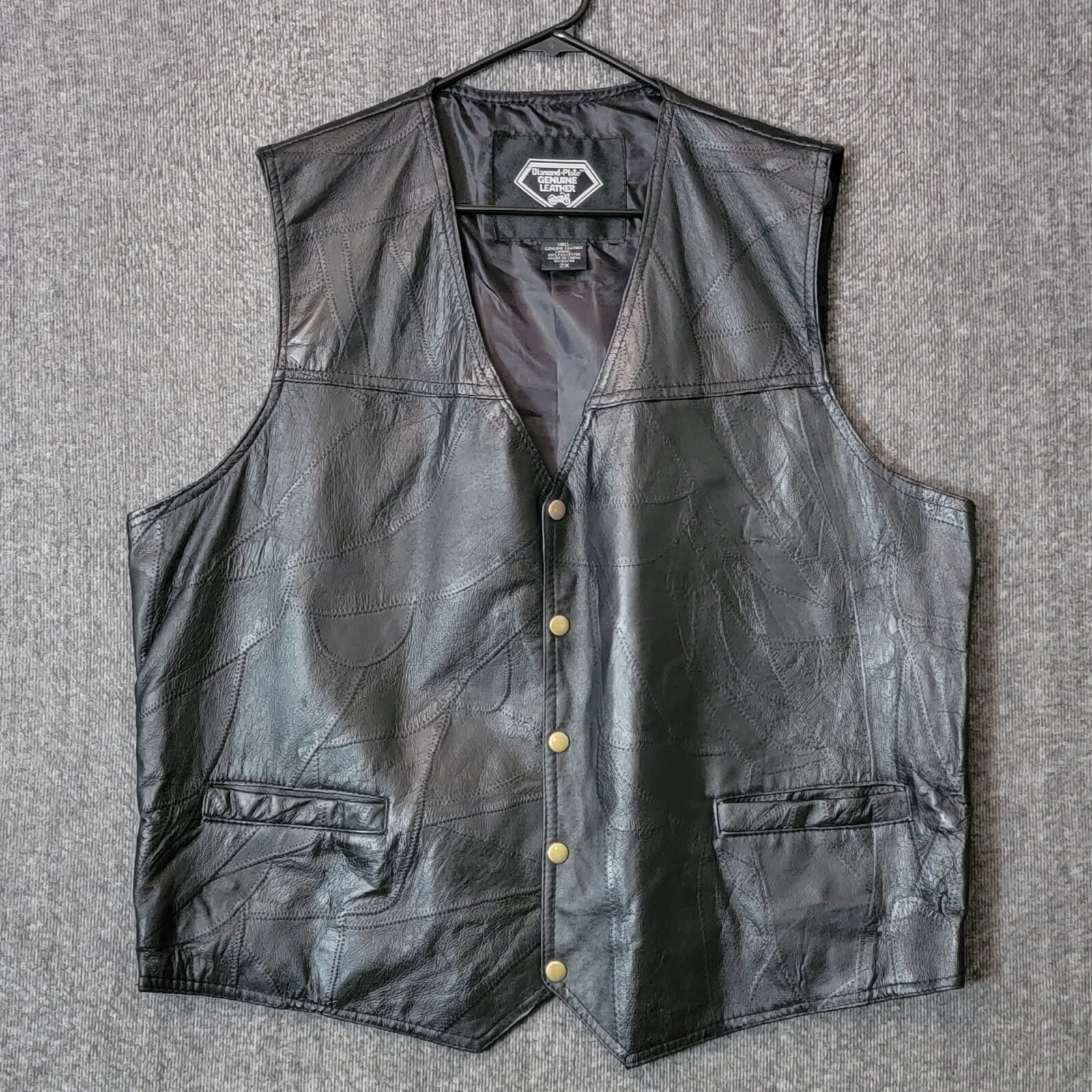 как выглядит Diamond Plate Vest Mens 2XL Black Genuine Leather BIKERS ARE A RARE BREED фото