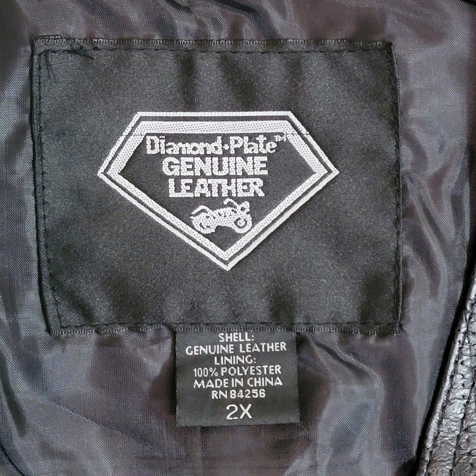 Diamond Plate Vest Mens 2XL Black Genuine Leather BIKERS ARE A RARE BREED
