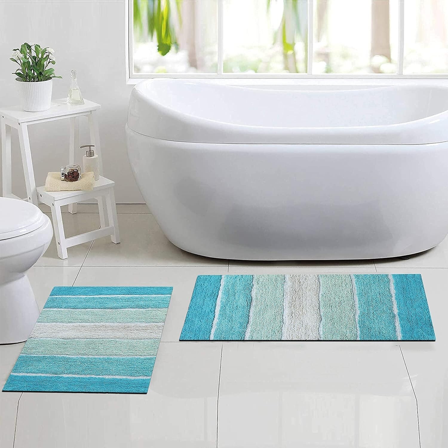 Set of 2 Aqua Turquoise Bath Rugs - Non Slip, Highly Absorbent, Machine Washable