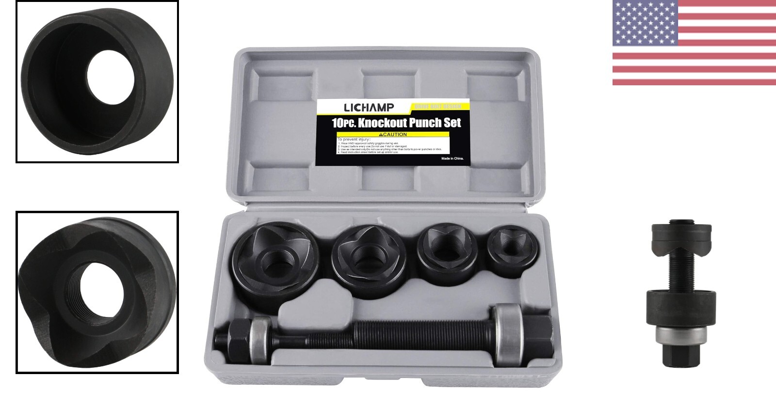 • Manual Knockout Punch Kit - Heavy Duty Metal Sheet Hole Cutter - Conduit Punch