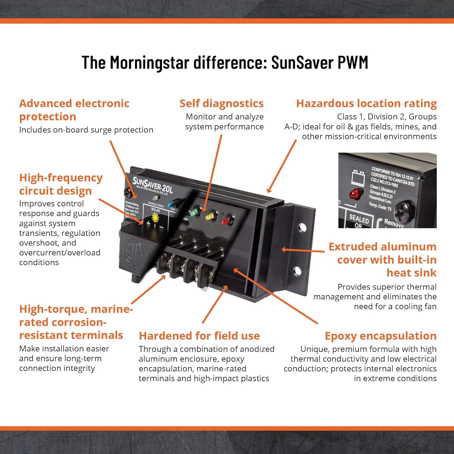 Morningstar SS-6L-12V SunSaver 6 amp 12 volt Solar Charge Controller with LVD
