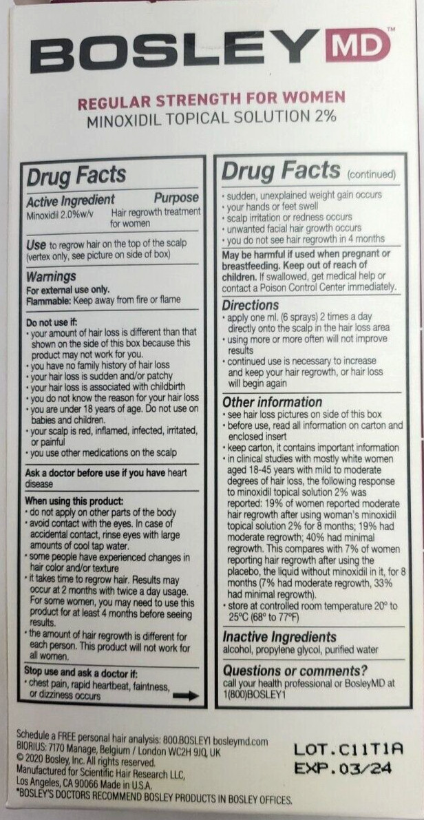 как выглядит 6 PACK, Bosley Womens Hair Regrowth Spray 2 , 2 fl oz. 60ml. EXP. 03/2024 фото