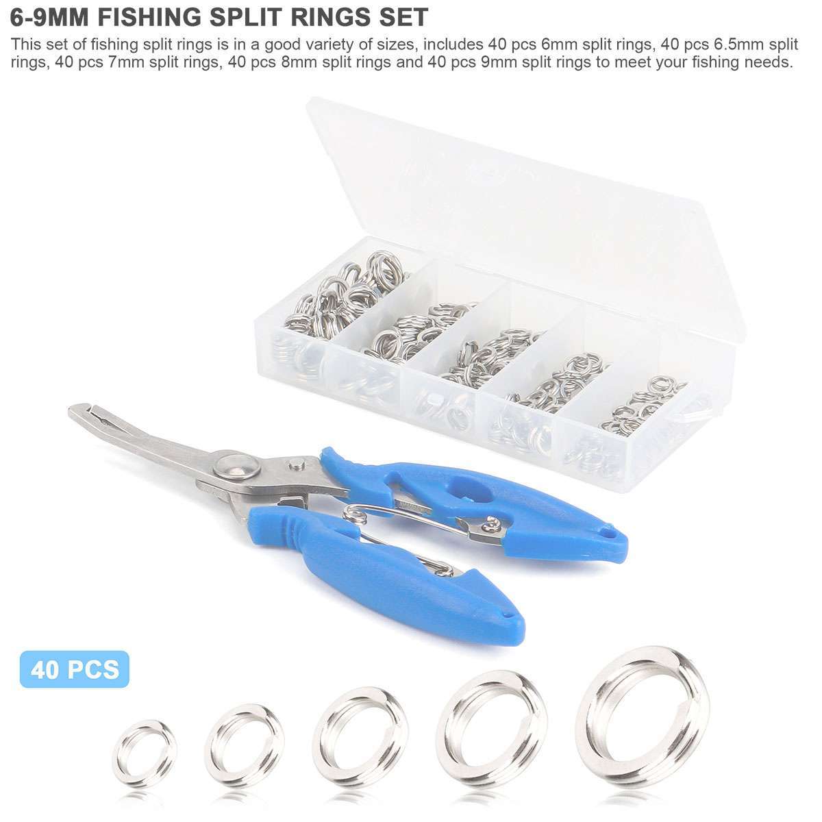• 200Pcs Stainless Steel 5 Size Fishing Lures Split Rings For Fish Snap Connector