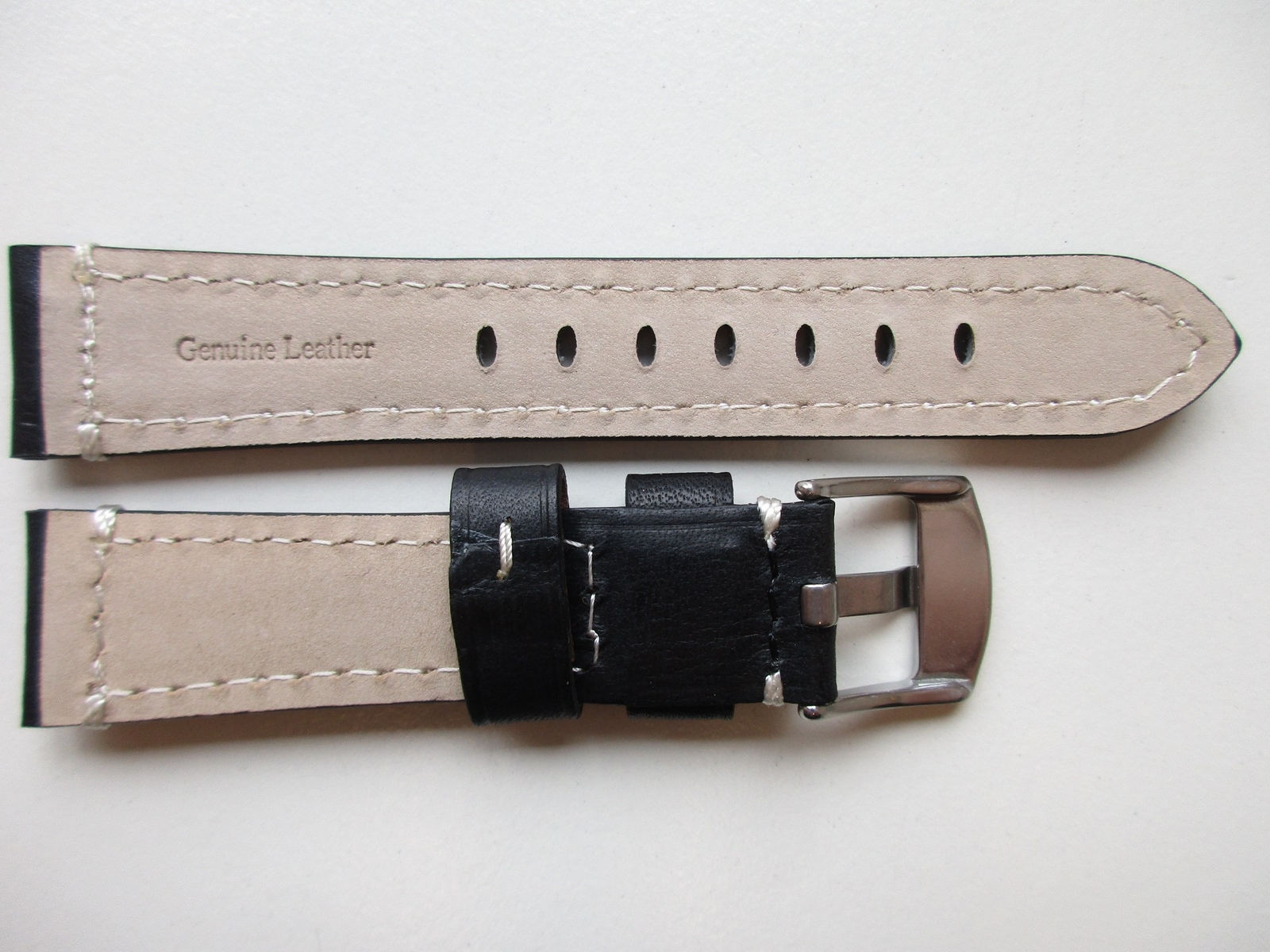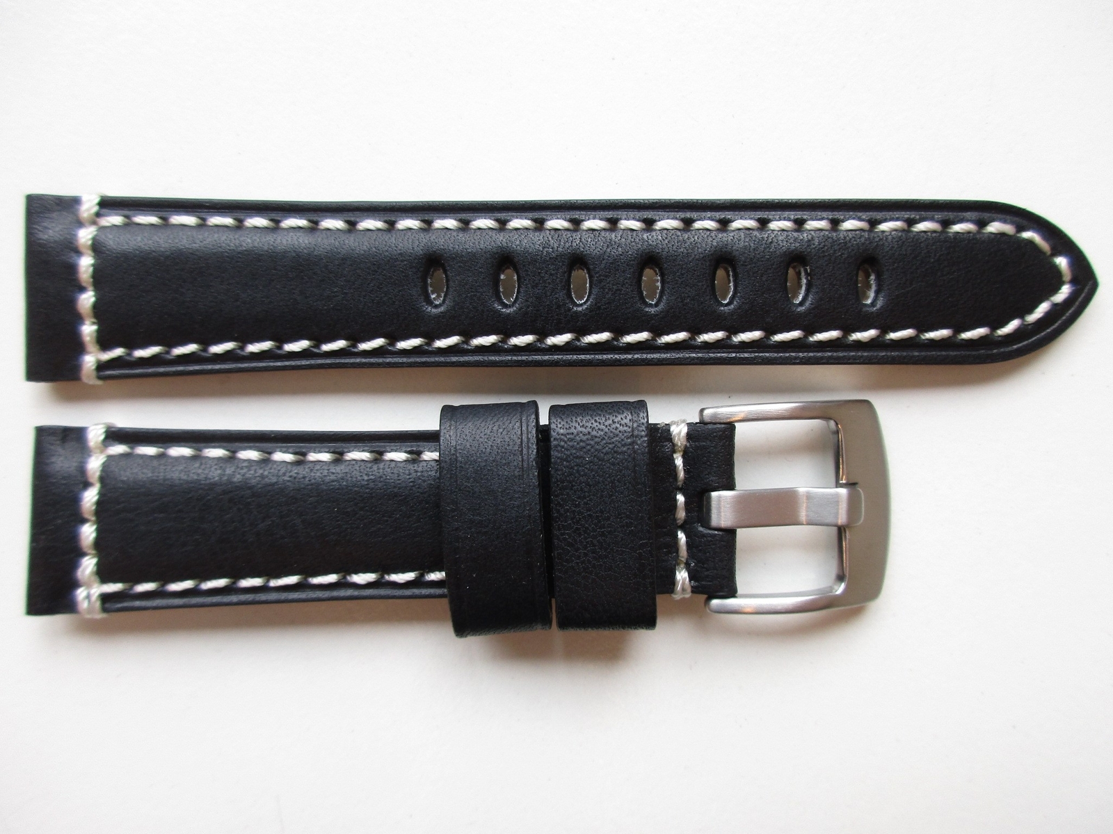 как выглядит Black "white lug-end stitched" 20 MM leather watch band strap фото