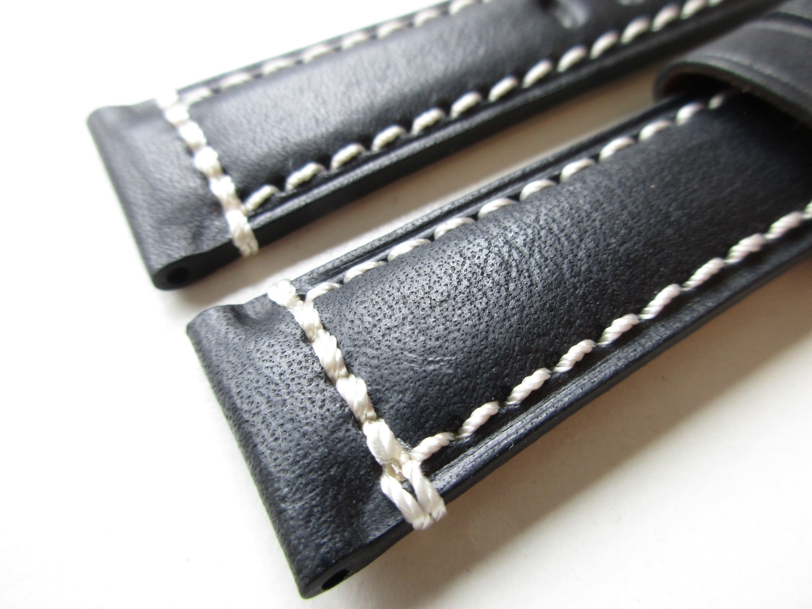 Black white lug-end stitched 20 MM leather watch band strap