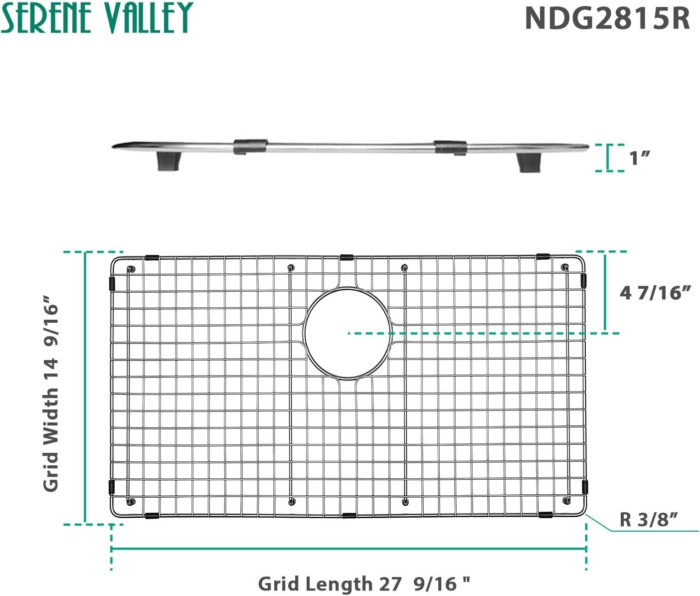 Serene Valley Sink Bottom Grid 27-9/16 X 14-7/16, Centered Drain SVH2815C