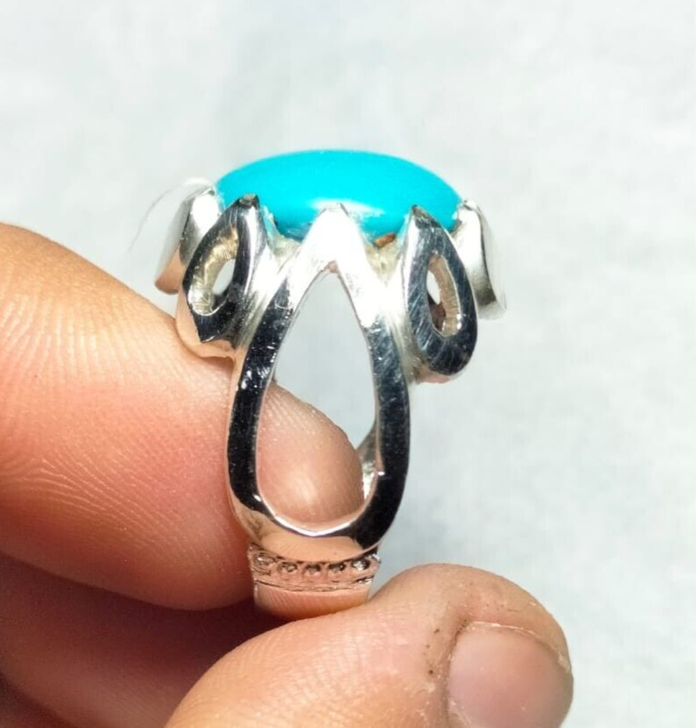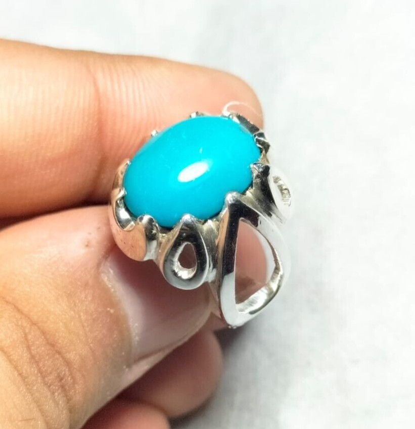 Nishapuri Feroza Natural Turequoise Stone Ring Sterling Silver 925 Antique Style