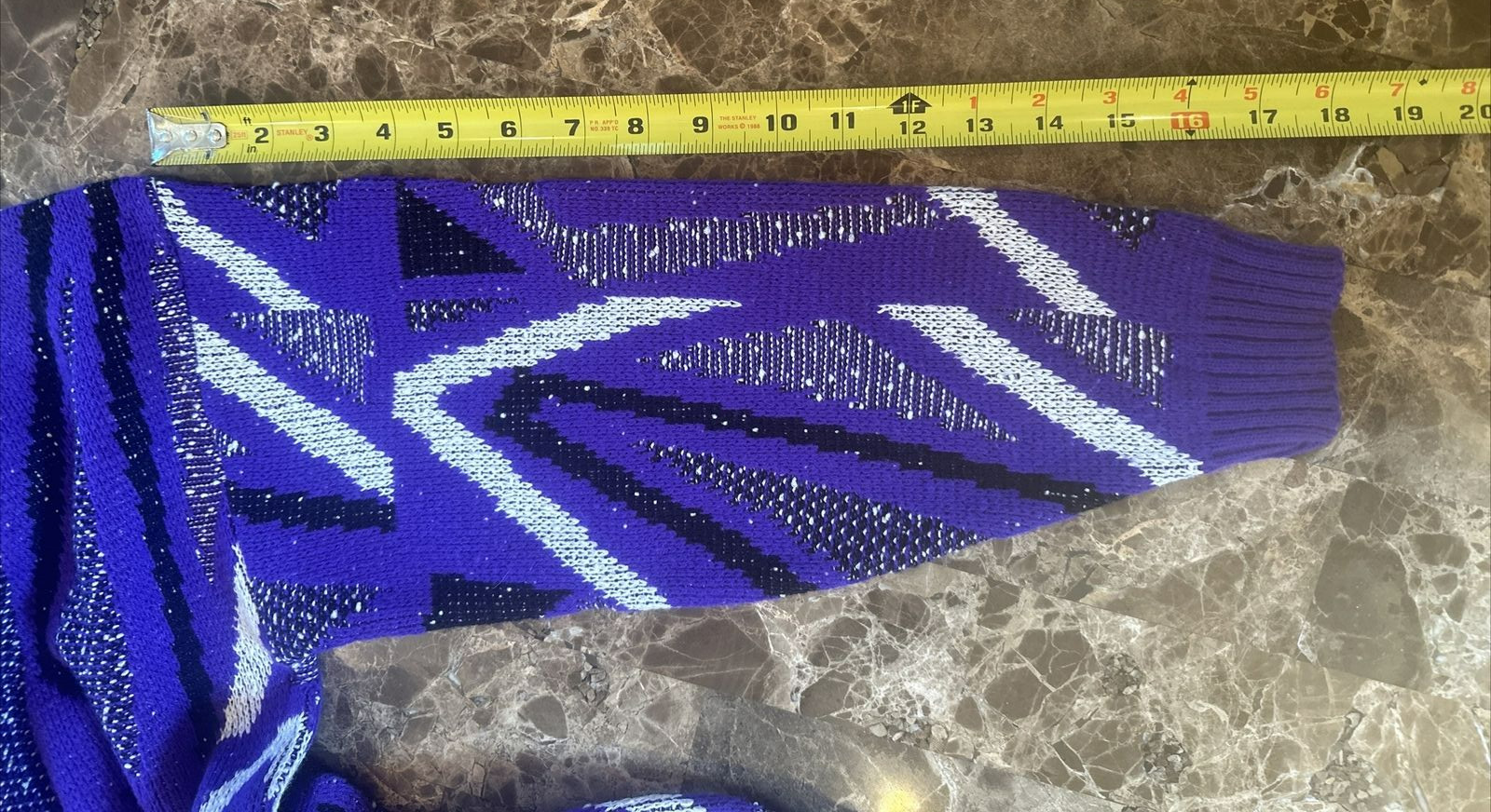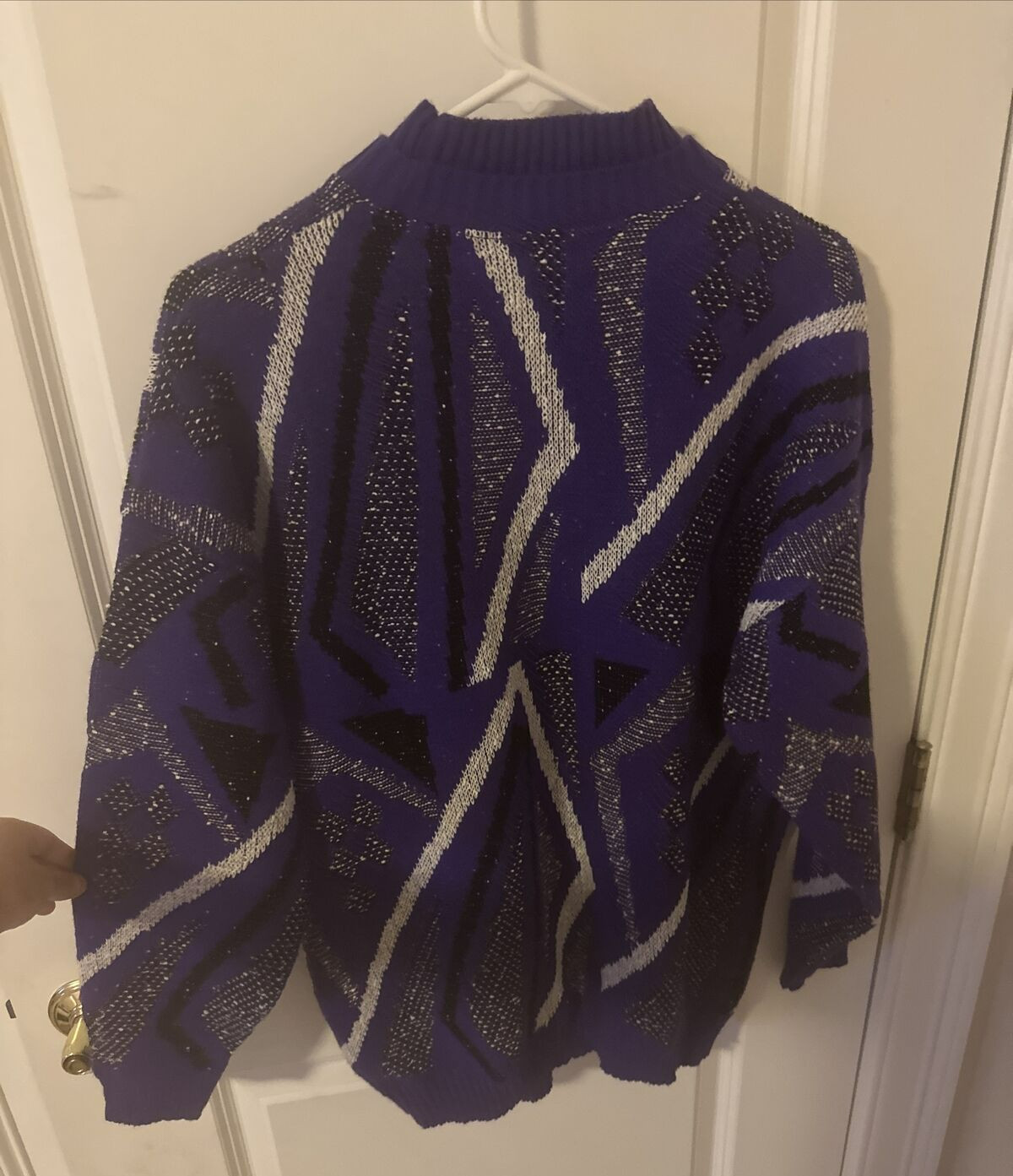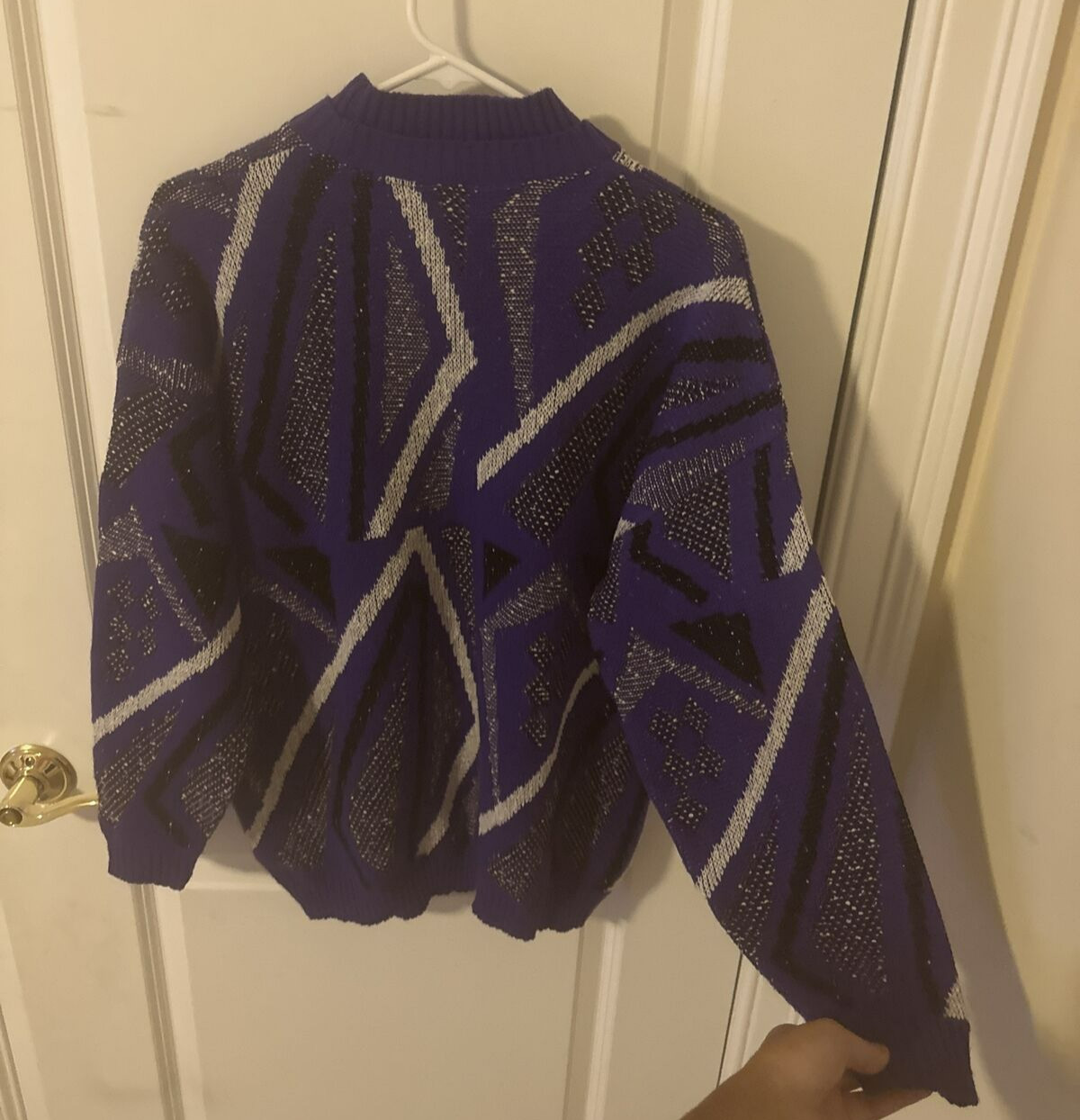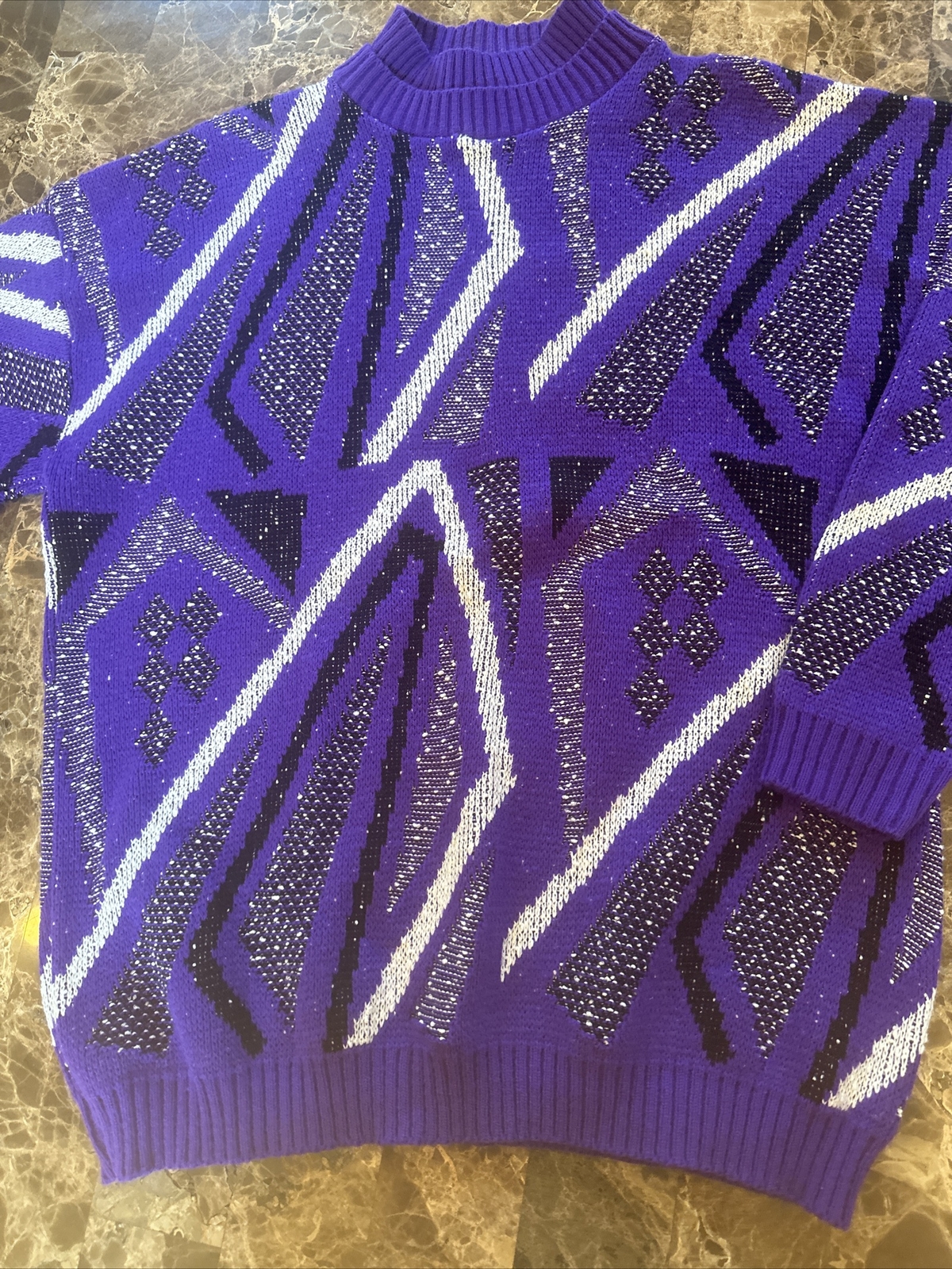 как выглядит Vintage 80s Geometric Colorblock Mod Preppy Jumper Black Purple Knit Sweater XL фото