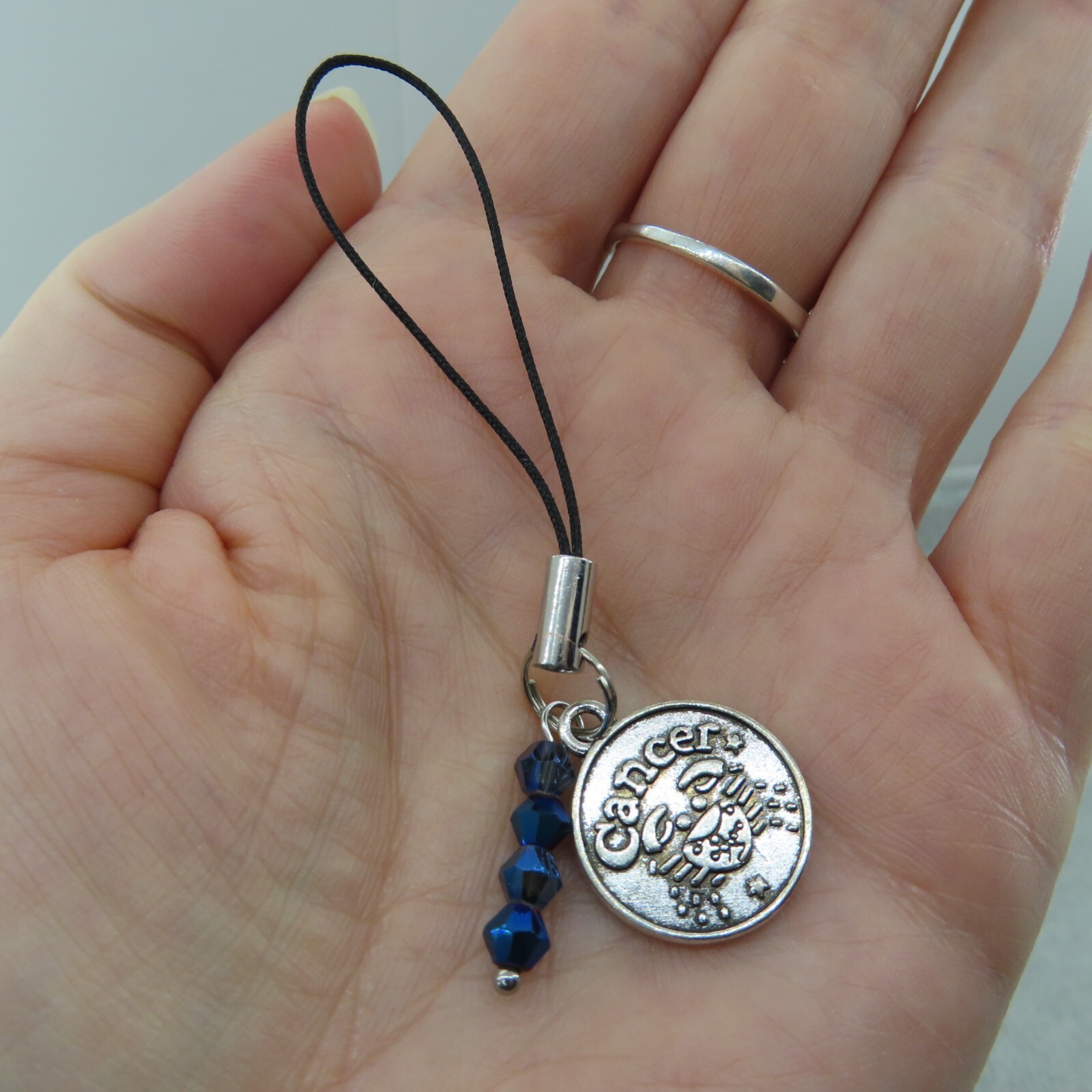 CANCER Cell Phone Charm Strap Antique Silver Tone Crystal Bead Imaginitive New
