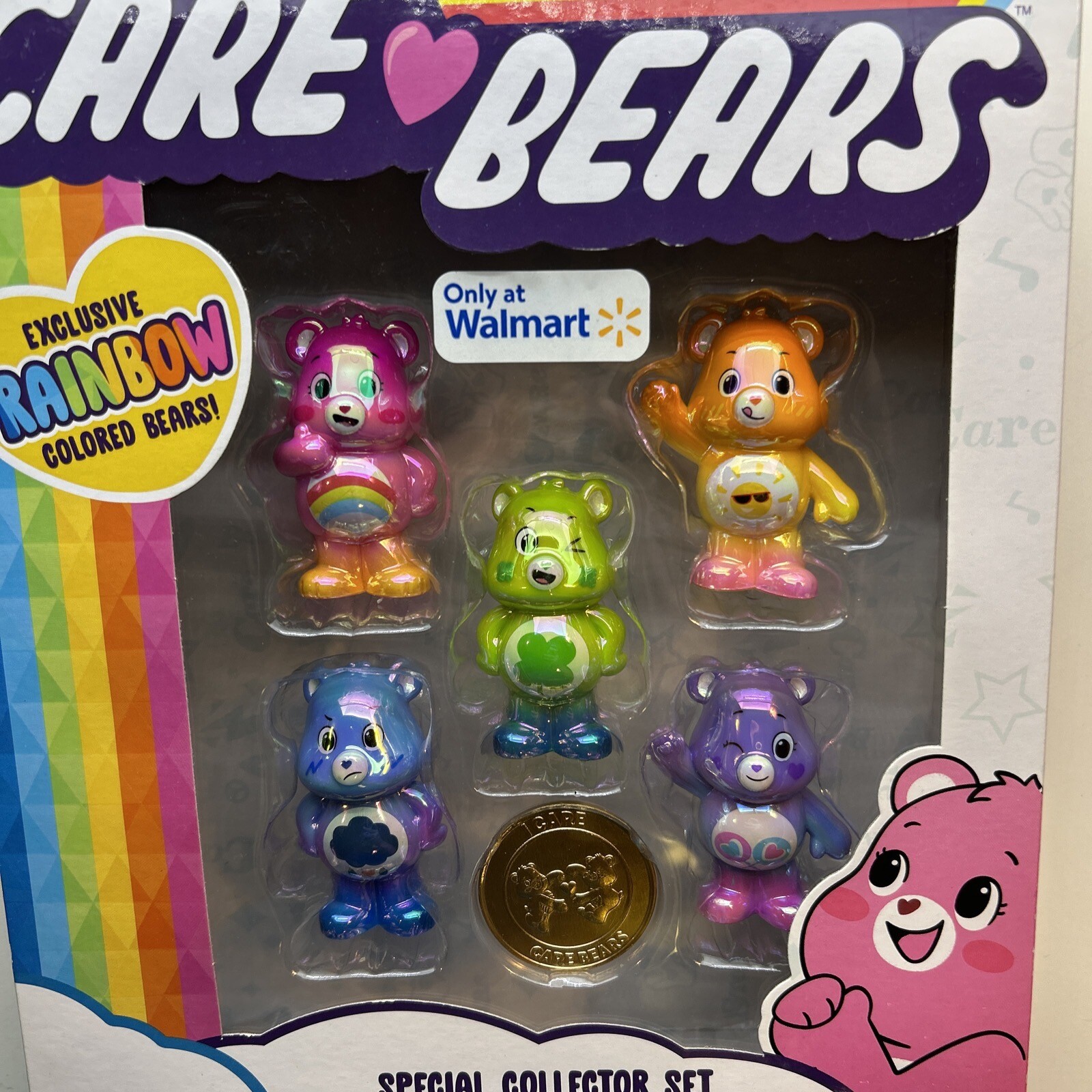 Care Bears Mini Figures Special Collector Set Rainbow Shine Includes Coin NIB