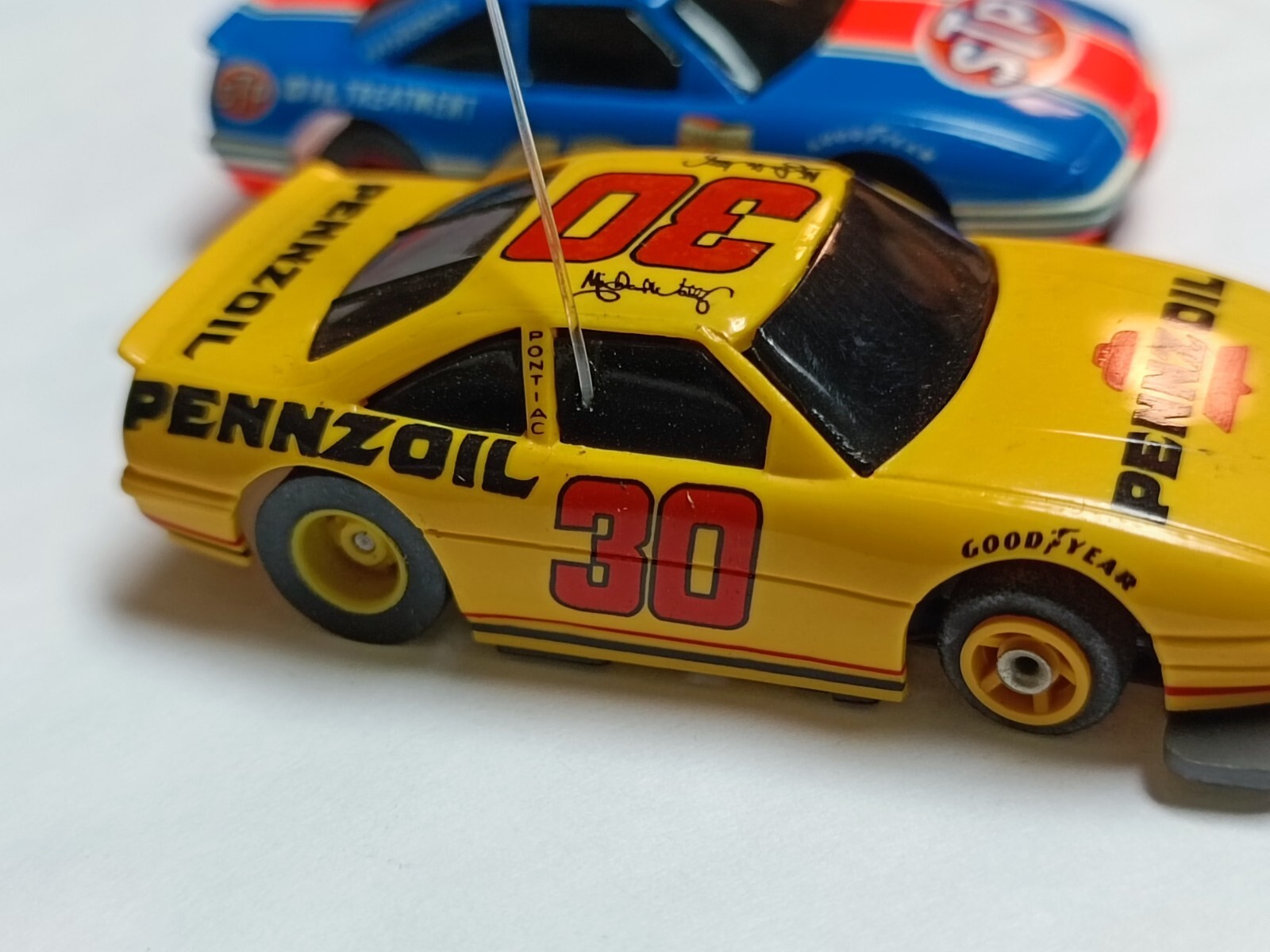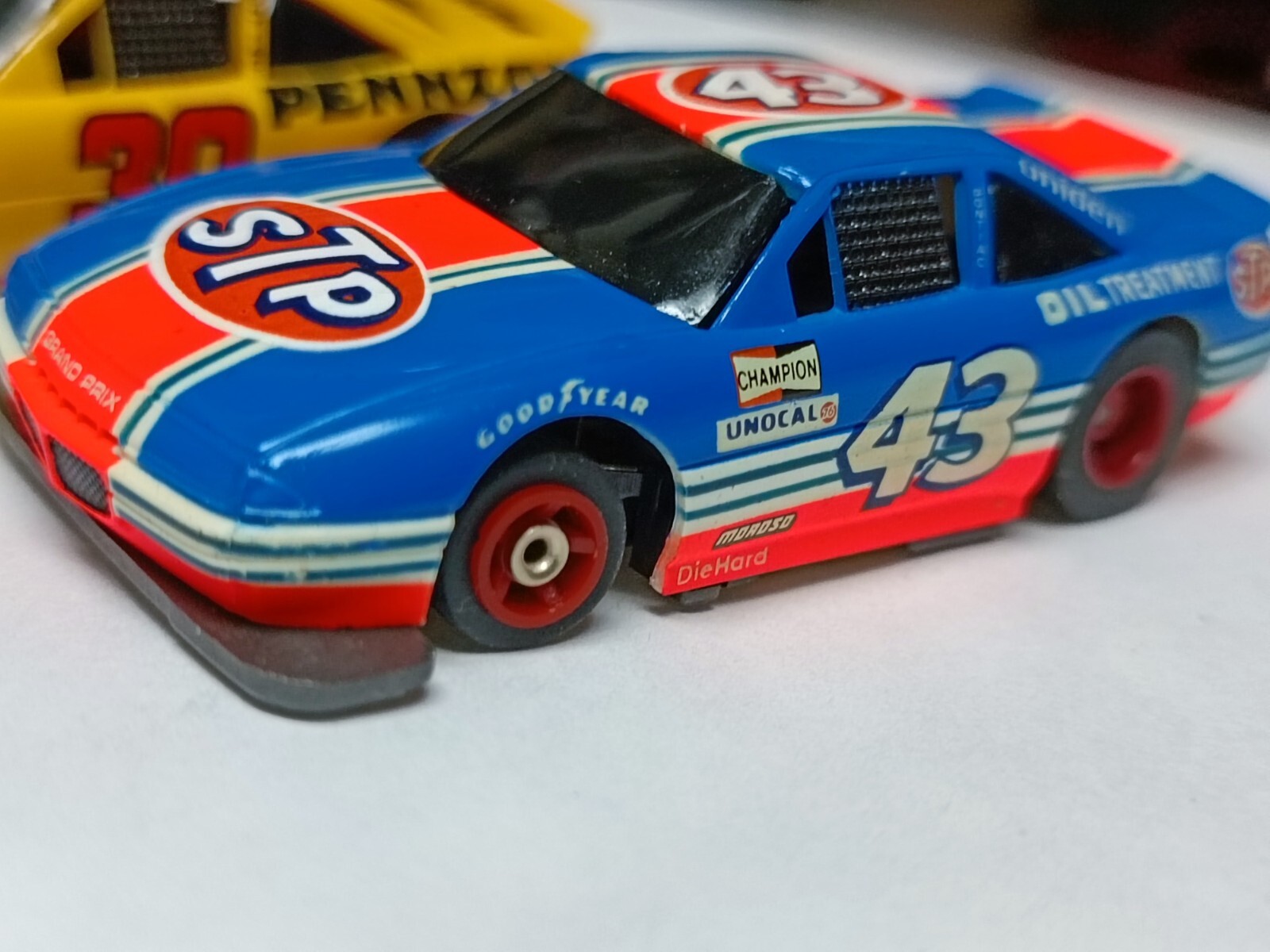 Tyco TCR 30 pennzoil and 43 stp with matching TCR color wheels chassis unused