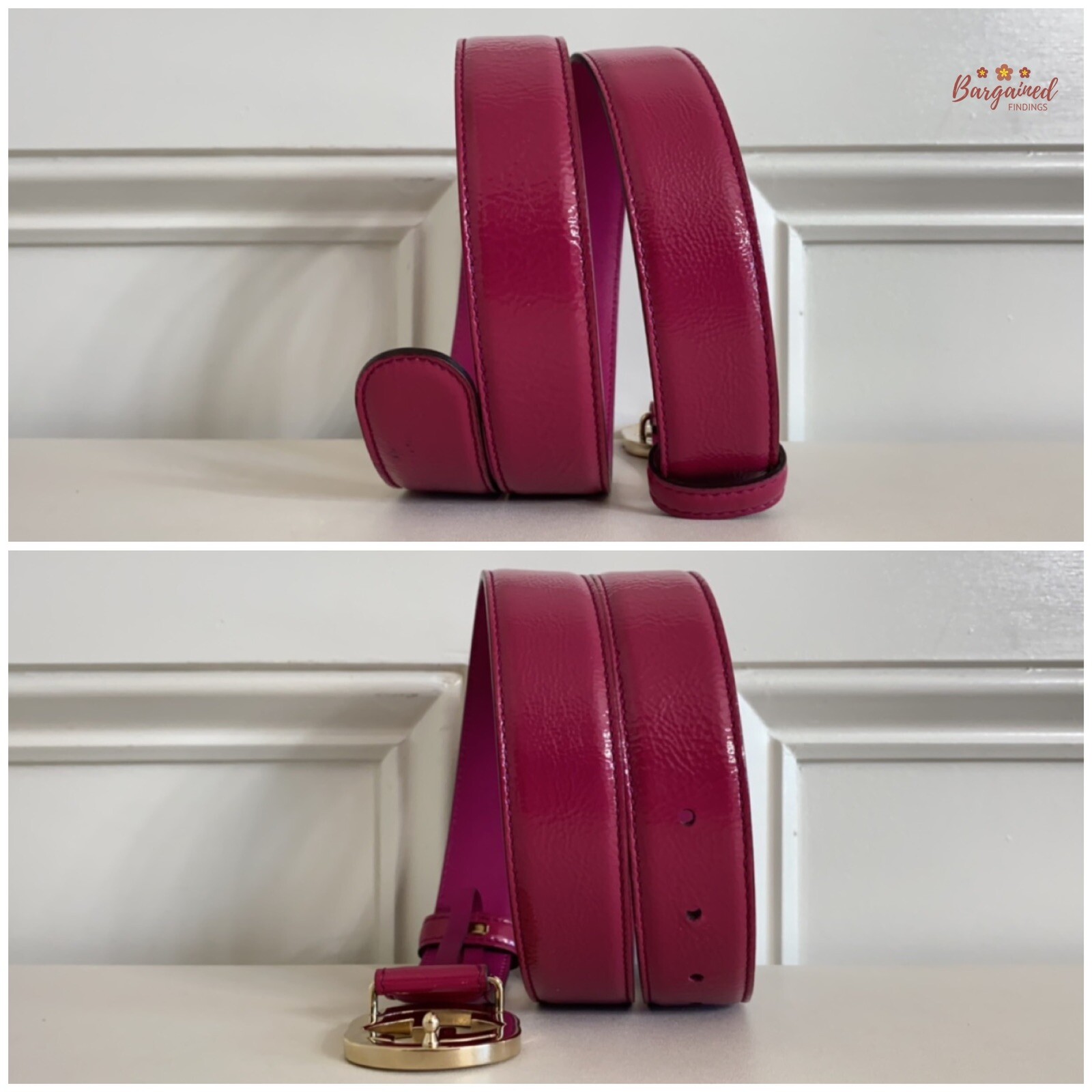 как выглядит Authentic GUCCI Fuchsia Pink Coated Calfskin Leather Interlocking G Belt 85/34 фото