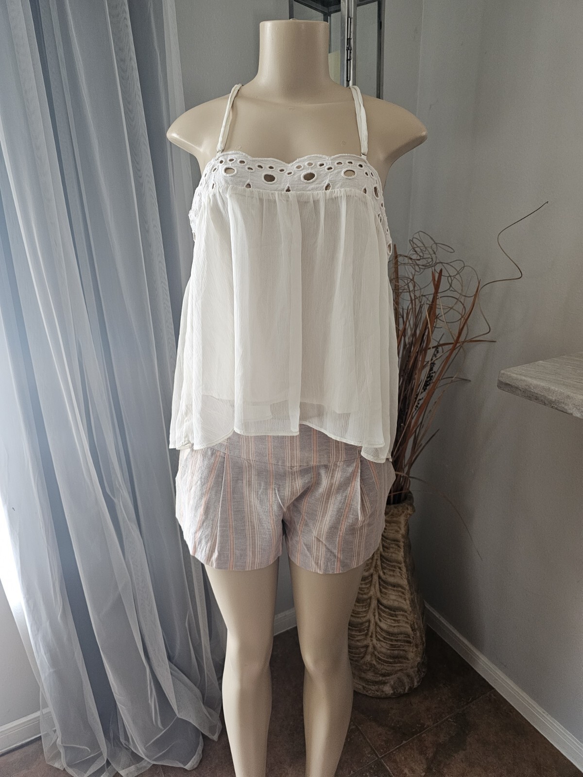 Free People Women's Austin Shorts Linen Blend Orange Striped Paperbag Boho Style