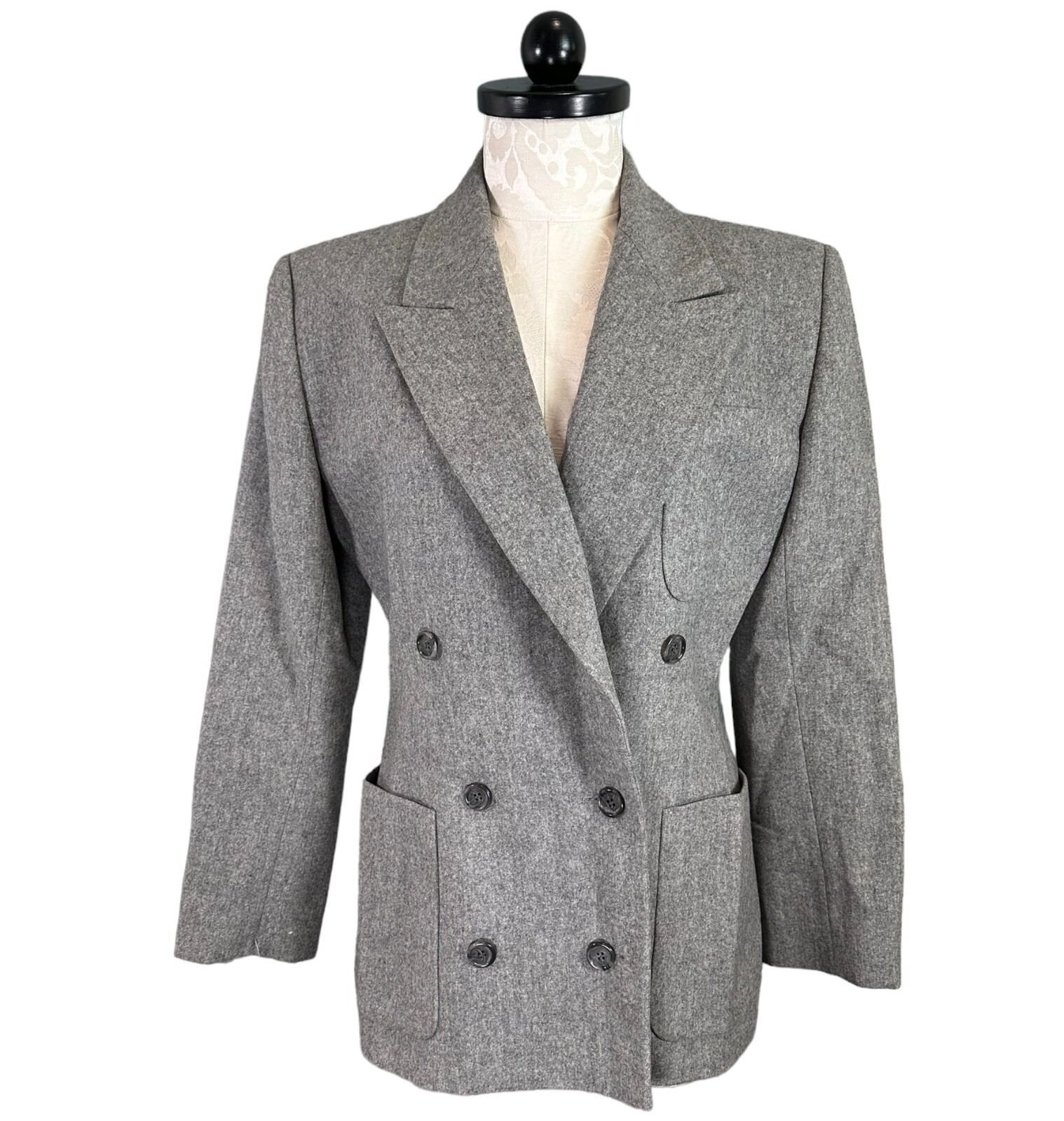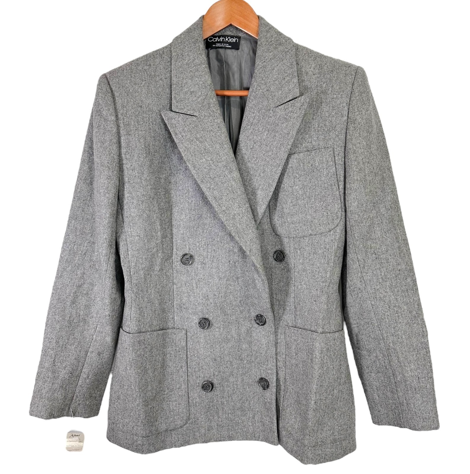 как выглядит NWT Vintage Calvin Klein Notched Collar Double Breasted Blazer Women