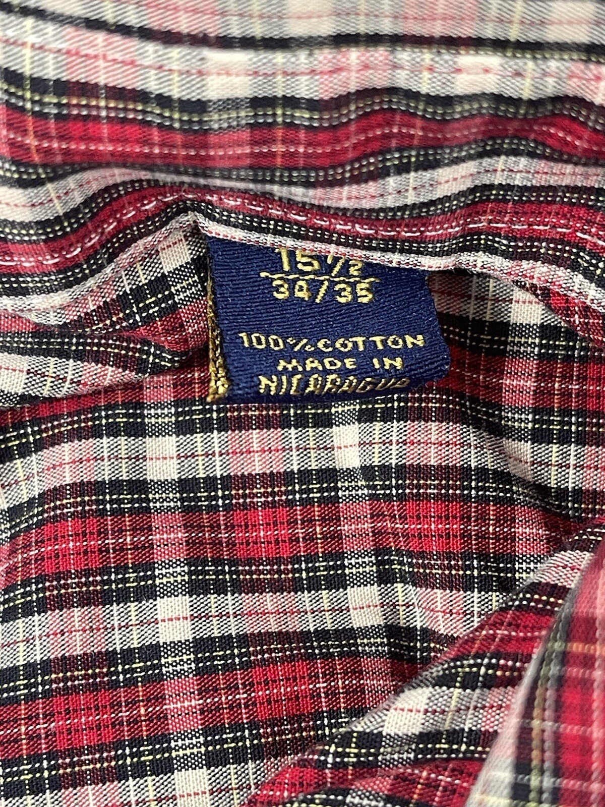 Club Room Plaid Long Sleeve Button-Down Dress Shirt Men's 15 1/2 Christmas Red