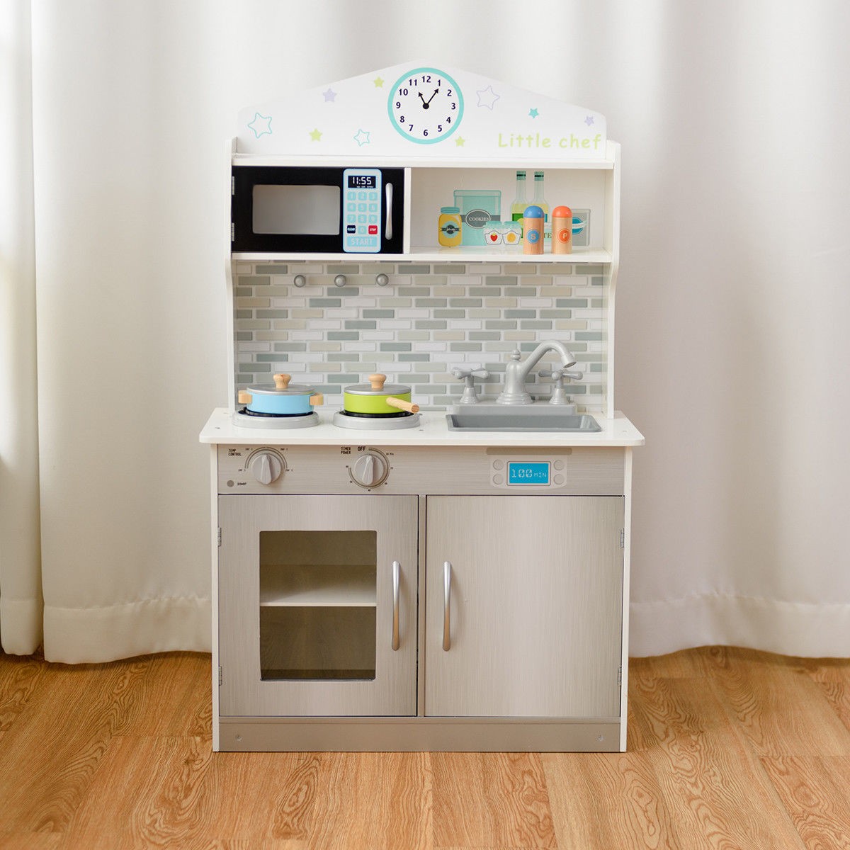 как выглядит Kids Wooden Pretend Cooking Playset Cookware Play Set Kitchen Toys Toddler Gift фото