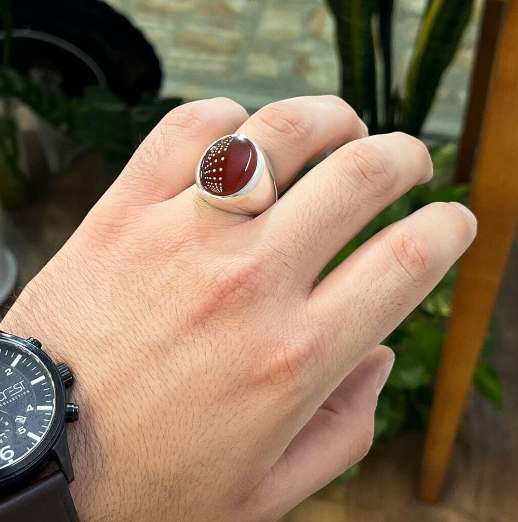 Beautiful Carnelian Agate Ring Yemeni Aqeeq Ring Simple Band Akik Ring 925