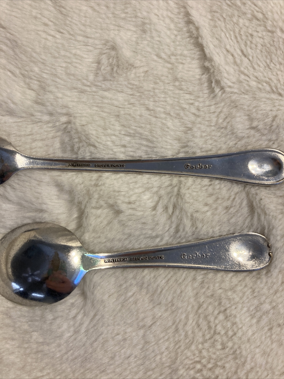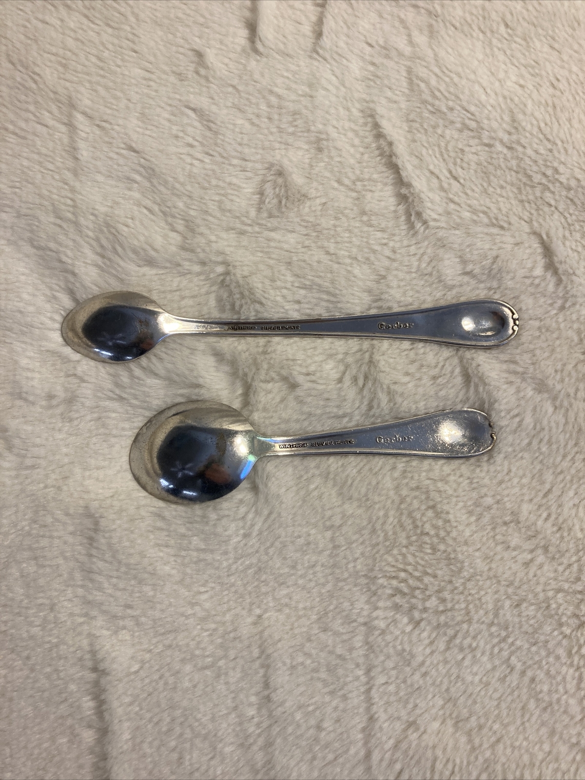 VINTAGE Gerber 2 BABY SPOONs Winthrop SILVER PLATE Very Cool A1