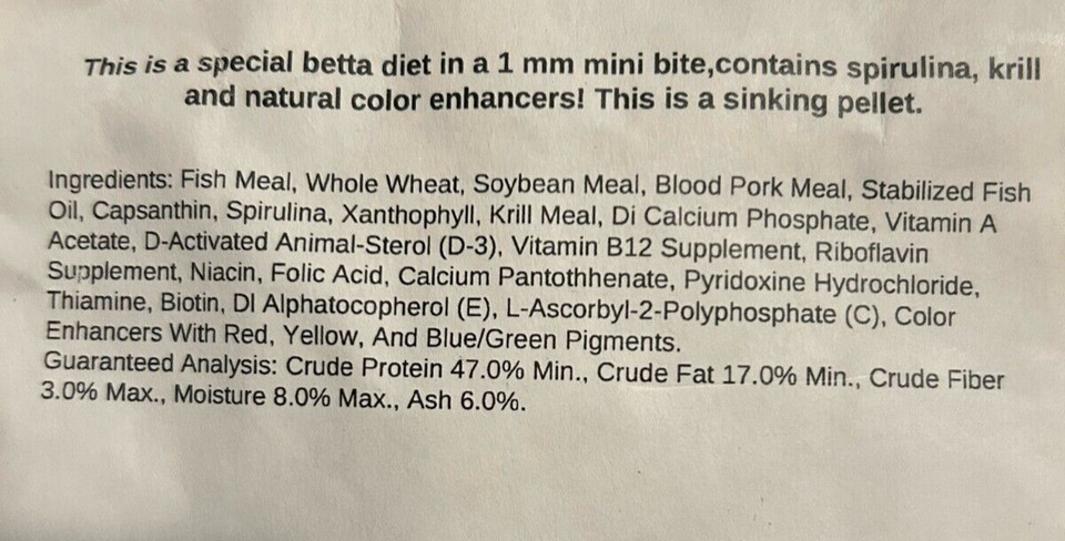 как выглядит Premium "Betta" 1 mm Sinking Pellets Tropical Fish Food with "Color Enhancer" фото