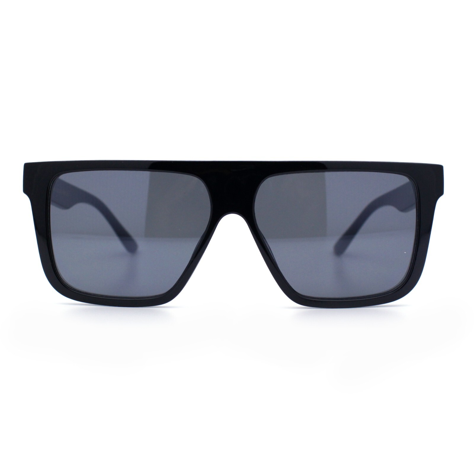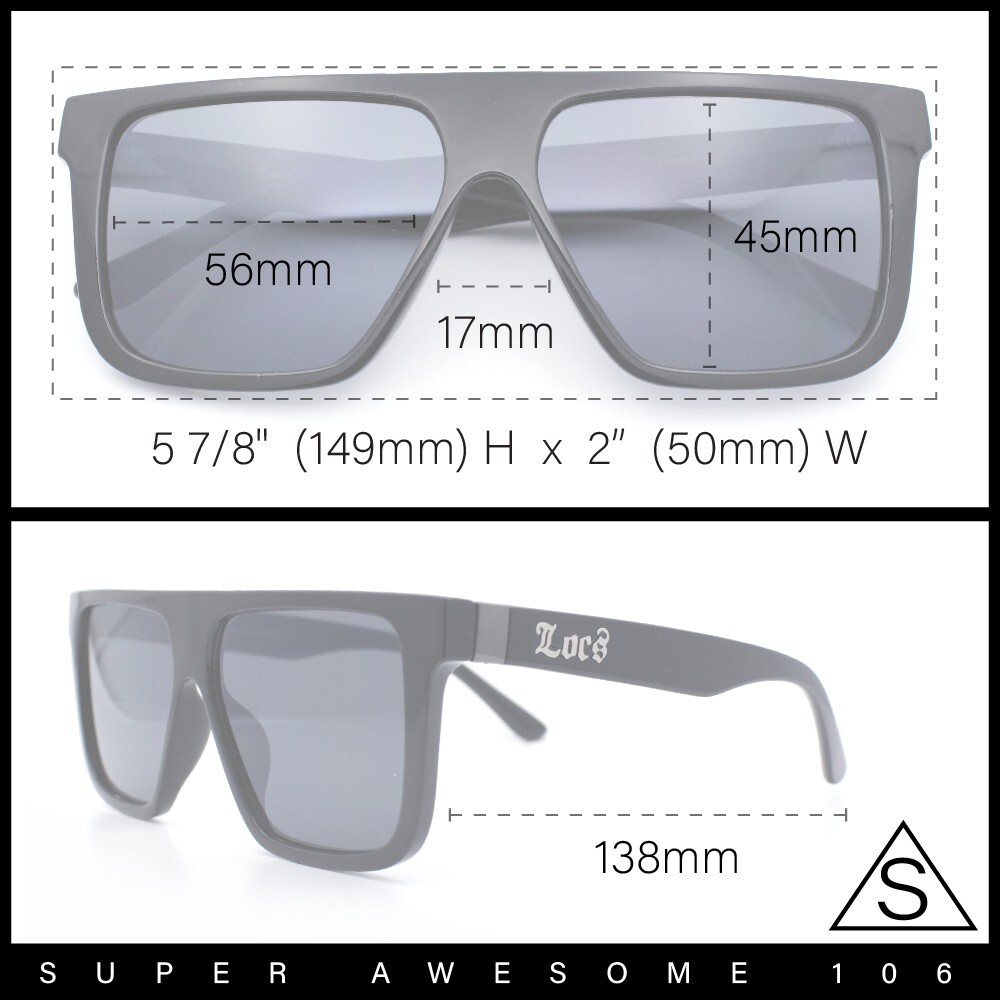 Locs Mens Flat Top Oversized Horn Rim All Black Plastic Gangster Sunglasses