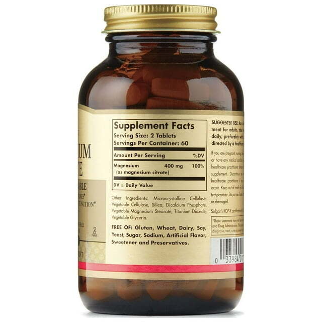 Solgar Magnesium Citrate, 120 Tablets - Promotes Healthy Bones - Supports Nerve