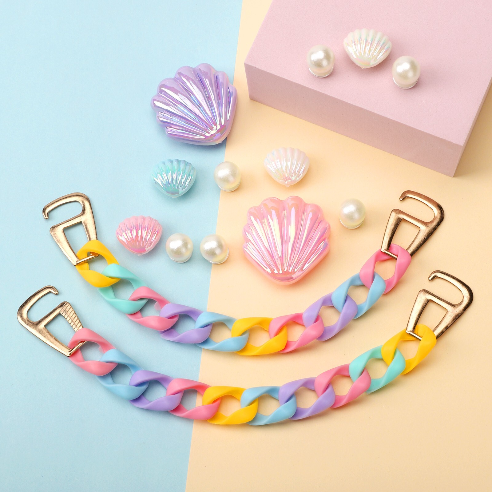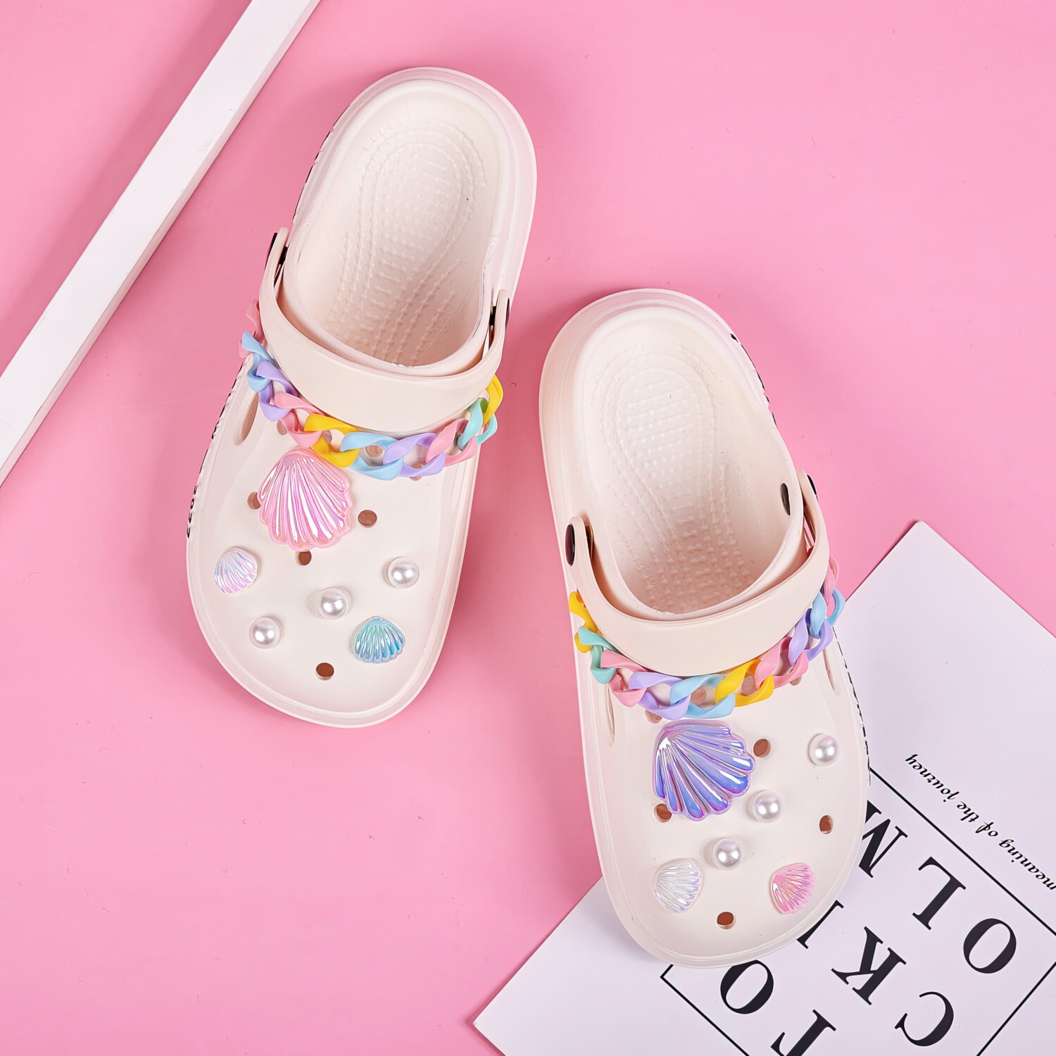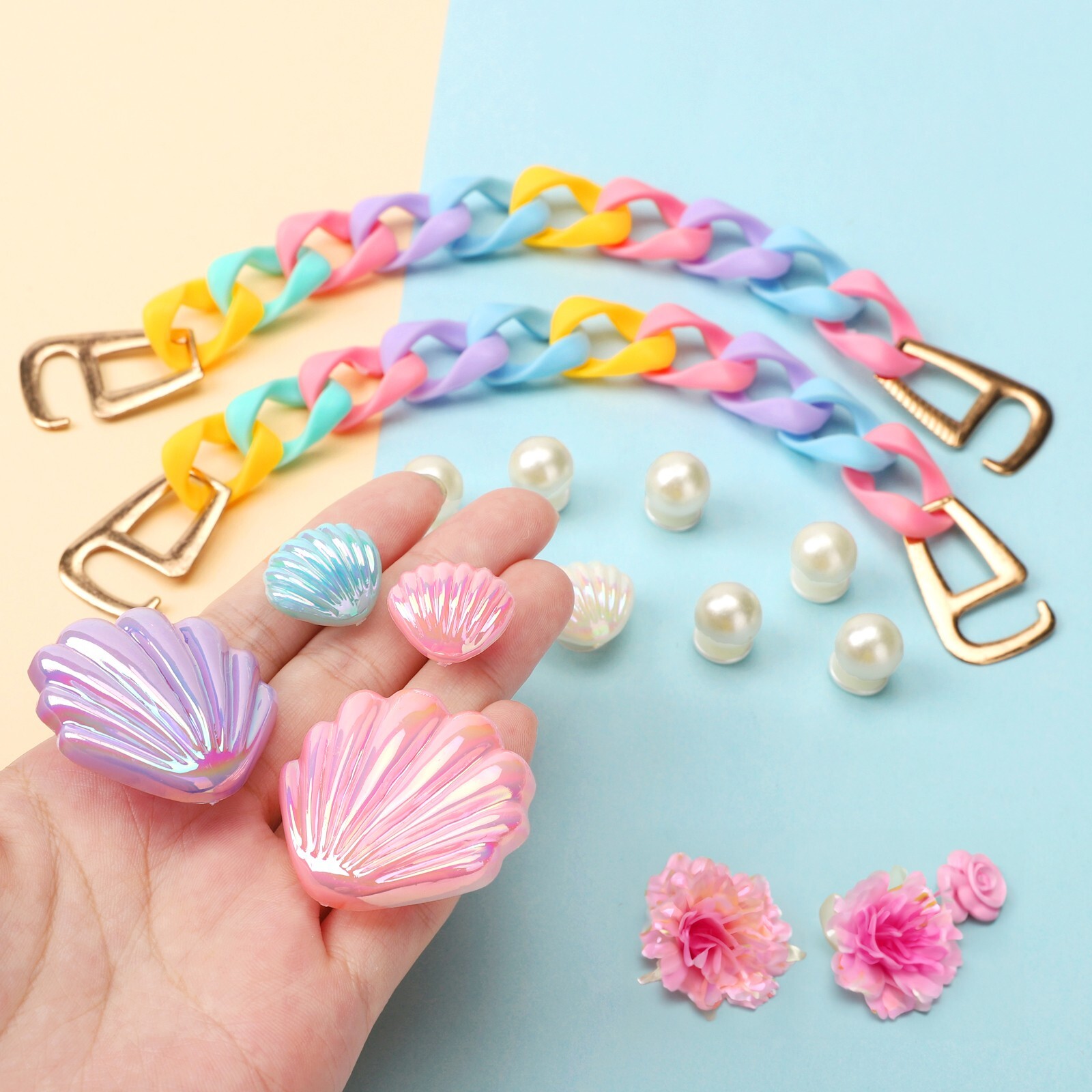 Colorful Shoe Charms Pack for Croc Cute Flowers,Pearls,Scallops,Chain,Women Girl